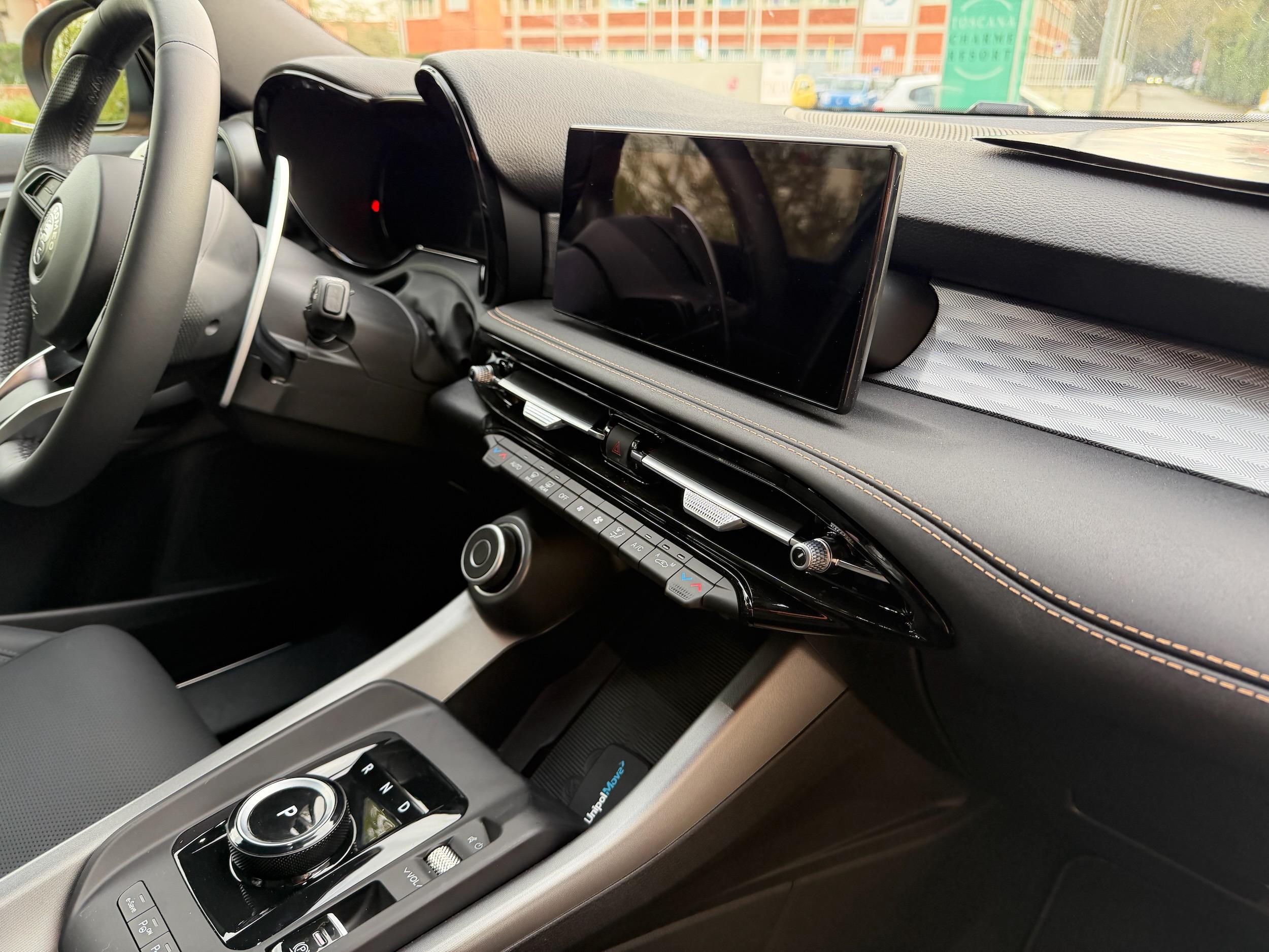 Alfa’s designers have taken the Tonale’s already stylish cabin and given it a proper once-over. The fundamentals remain unchanged, with the 10.25-inch digital instrument cluster and 12.3-inch infotainment touchscreen carried over, but the materials and detailing have stepped up.