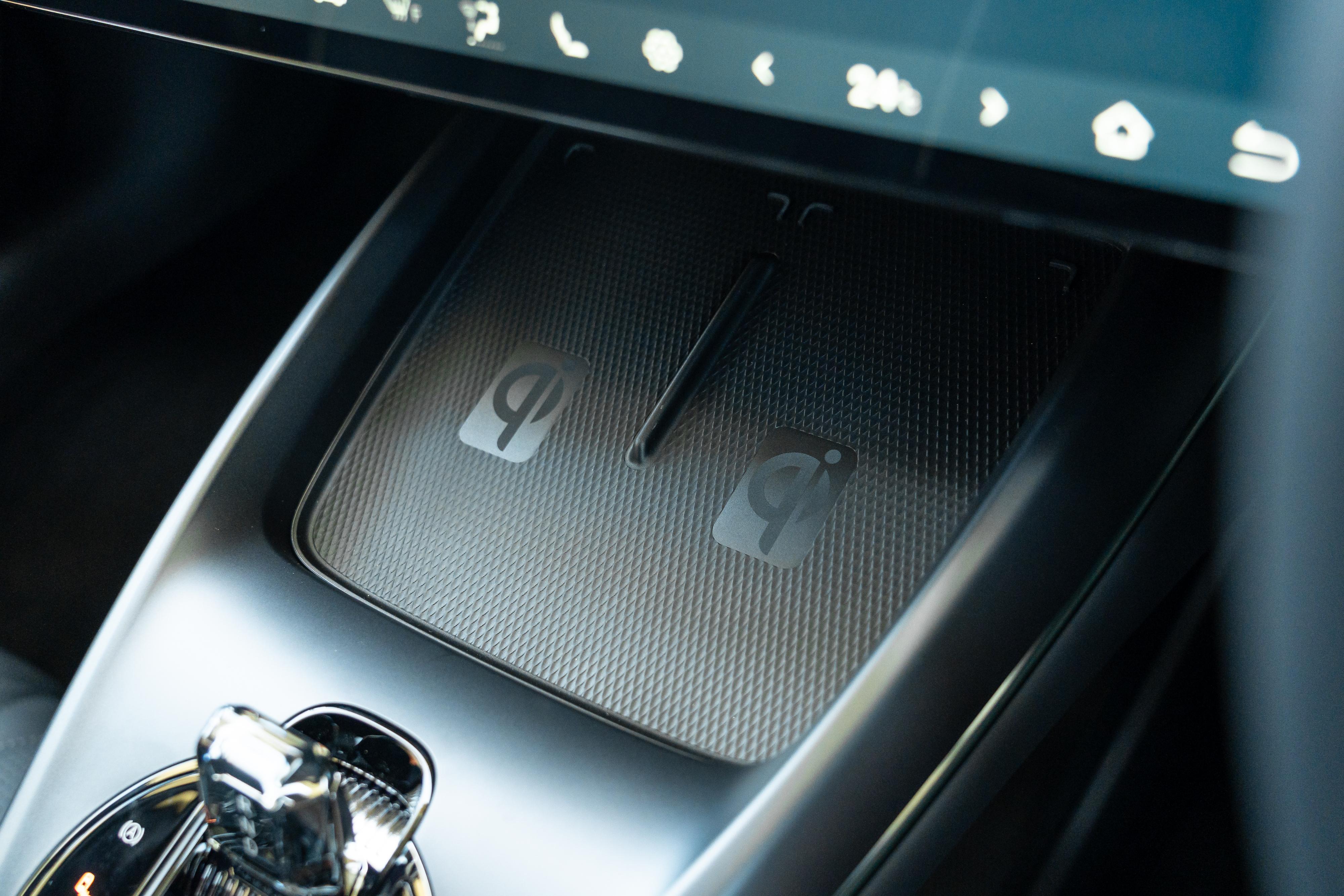 As for storage, front passengers are well catered for. There’s a sizeable tray under the centre console with USB-A and -C ports, a 12V outlet, and an SD card slot, which nicely hides small bags, or phones if you don’t want to use the dual wireless chargers above.