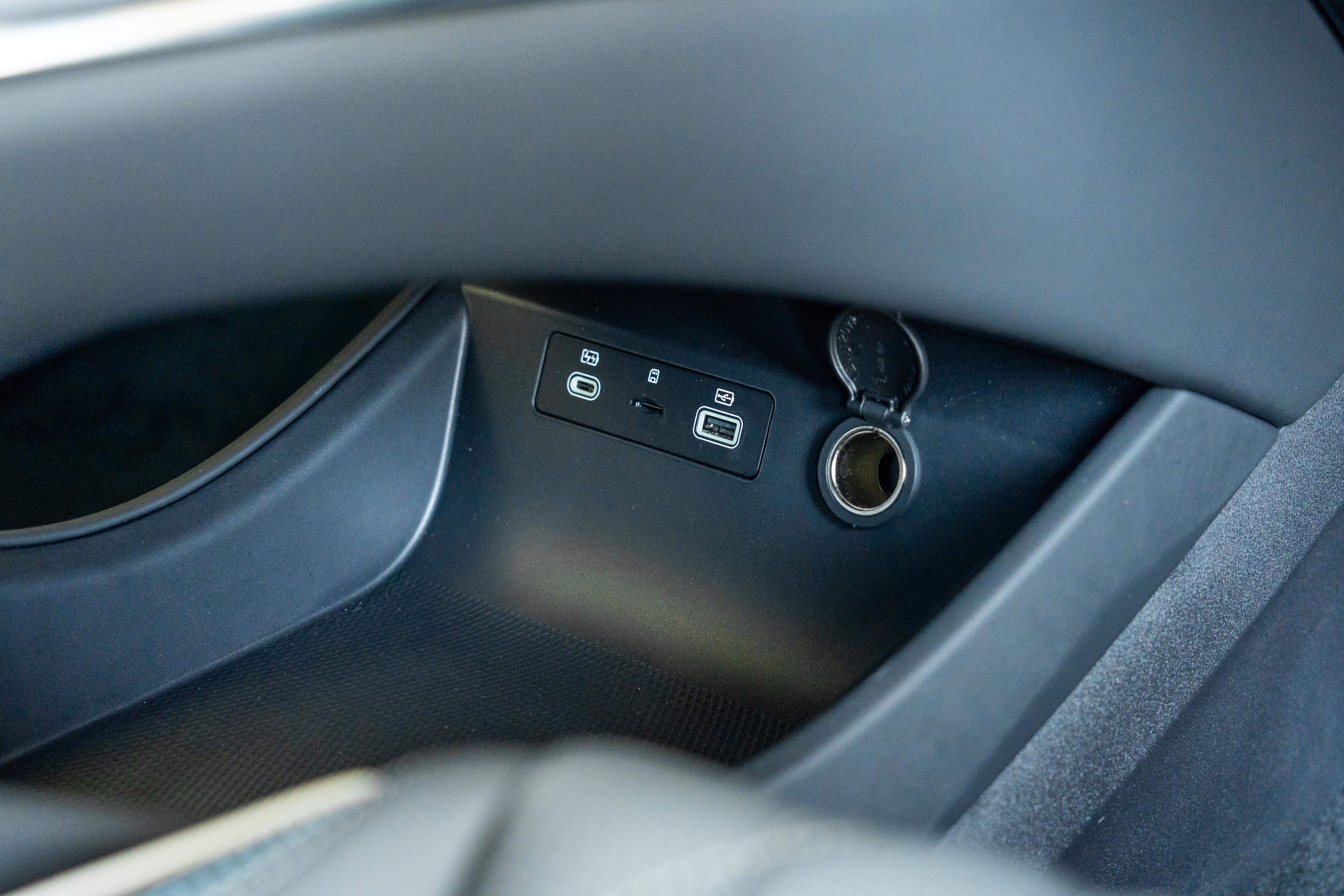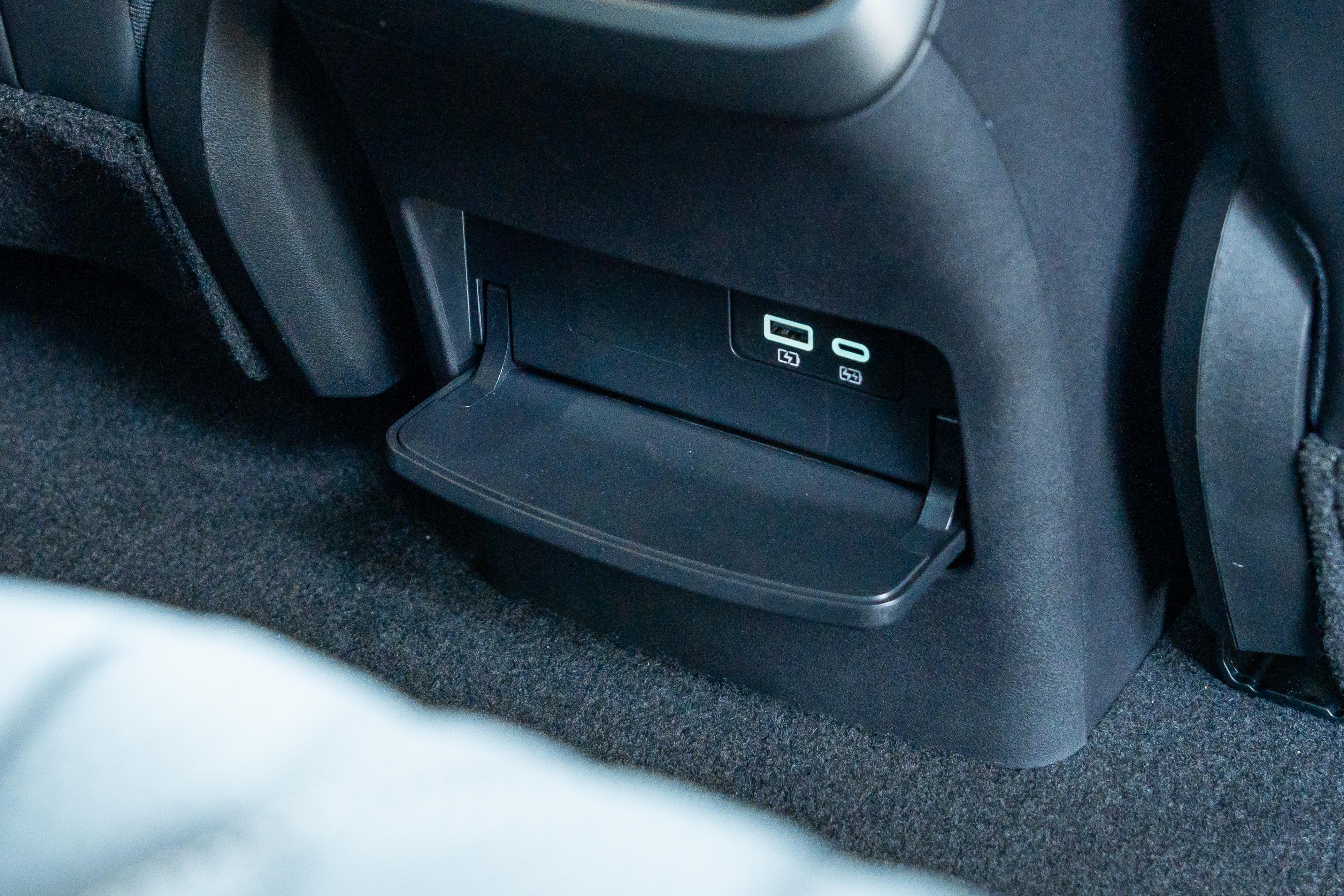 There’s no way to adjust any of that either, as pulling on the inviting-looking handle on top of the seat just releases the latch to fold it flat. Mind you, strange second-row ergonomics aren’t new for Chinese vehicles, and at least you get a soft fold-down armrest with cupholders, and USB-A and -C ports behind a flap on the back of the centre console.