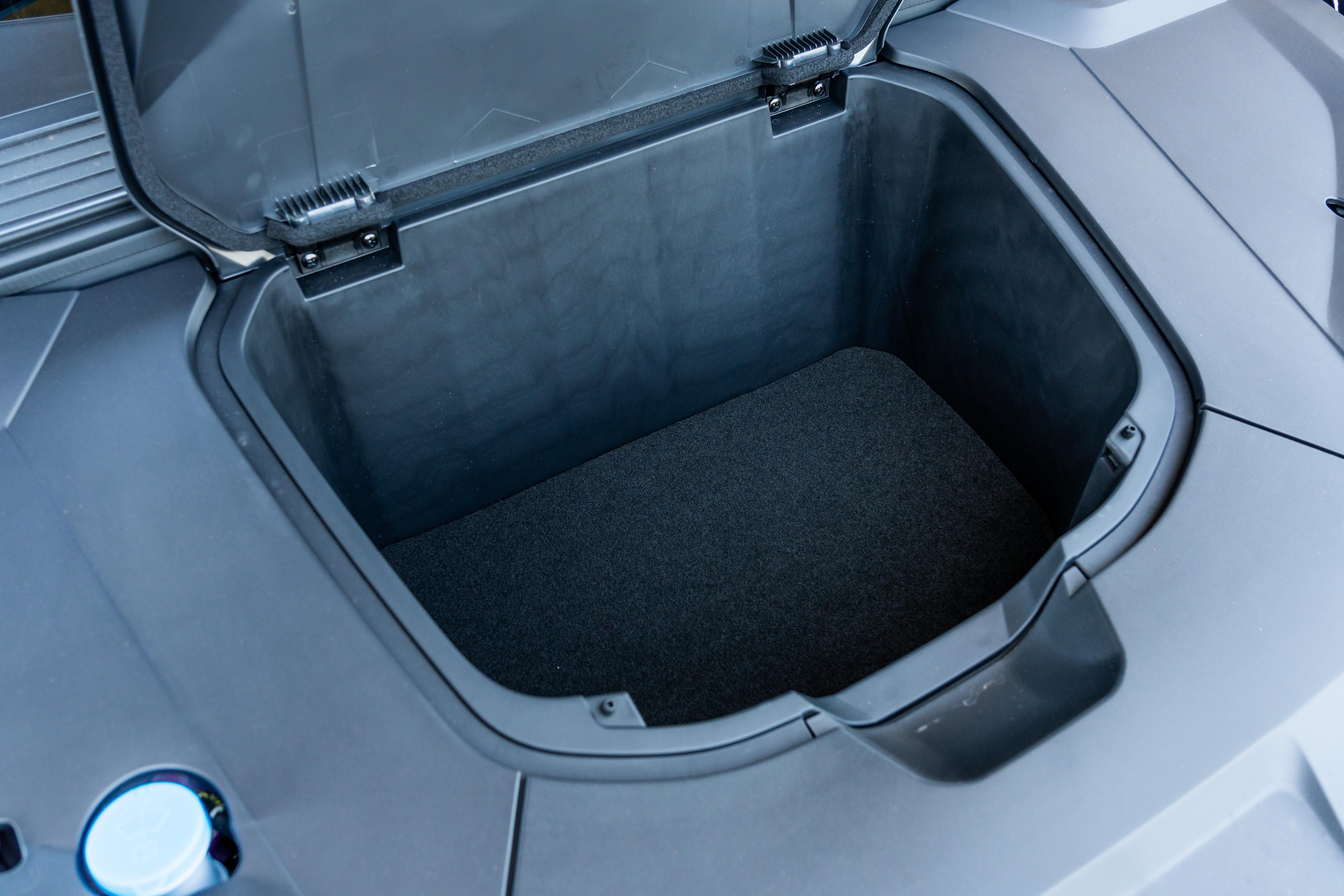 The tiller we get is still nicely sized and its leather finish is pleasant to the touch, but a significant downside is that there’s no tilt adjustment. This compromises the seating position, as the powered driver’s seat can be lowered more than you might expect and is actually quite comfortable, despite the EV battery under the floor.