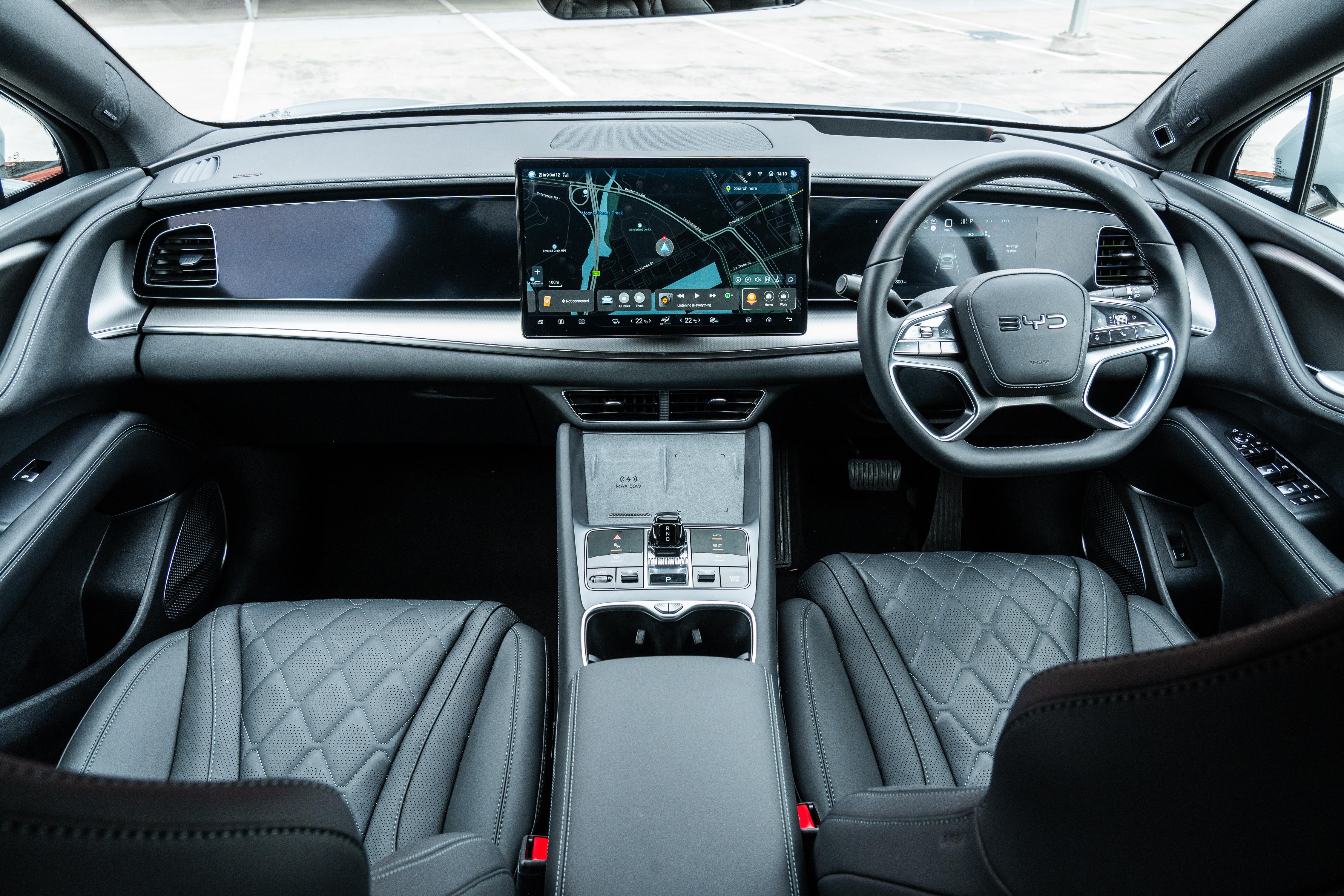The quilted leather trim – which BYD says is genuine leather – in the front and rear covers seats that are comfortable and reasonably supportive, but their sporty and contoured design isn’t reflected in how they feel to sit in.