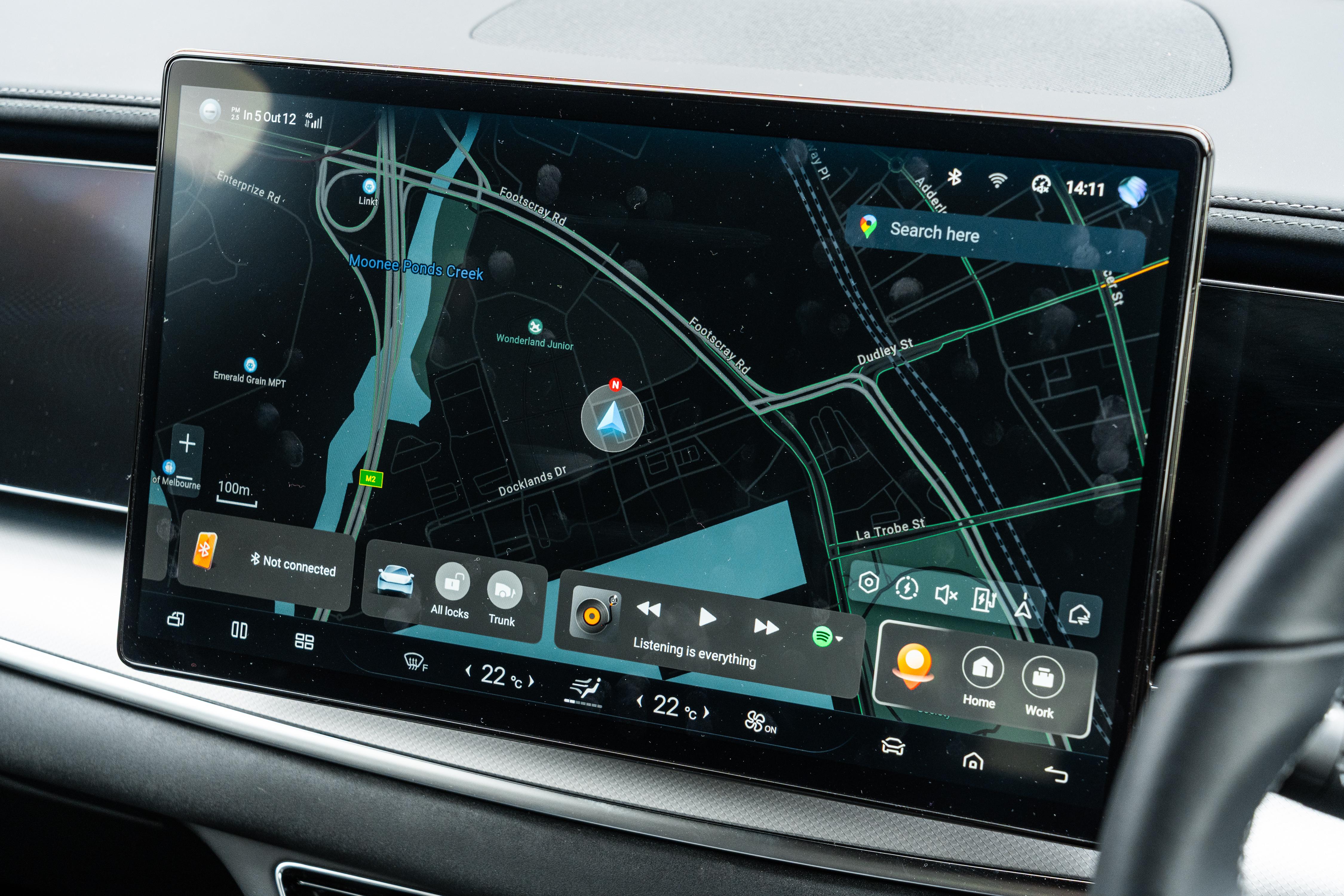 The massive 15.6-inch touchscreen takes centre stage, and it can rotate between landscape and portrait orientations, though if you’re using smartphone mirroring, you can only use the former.
