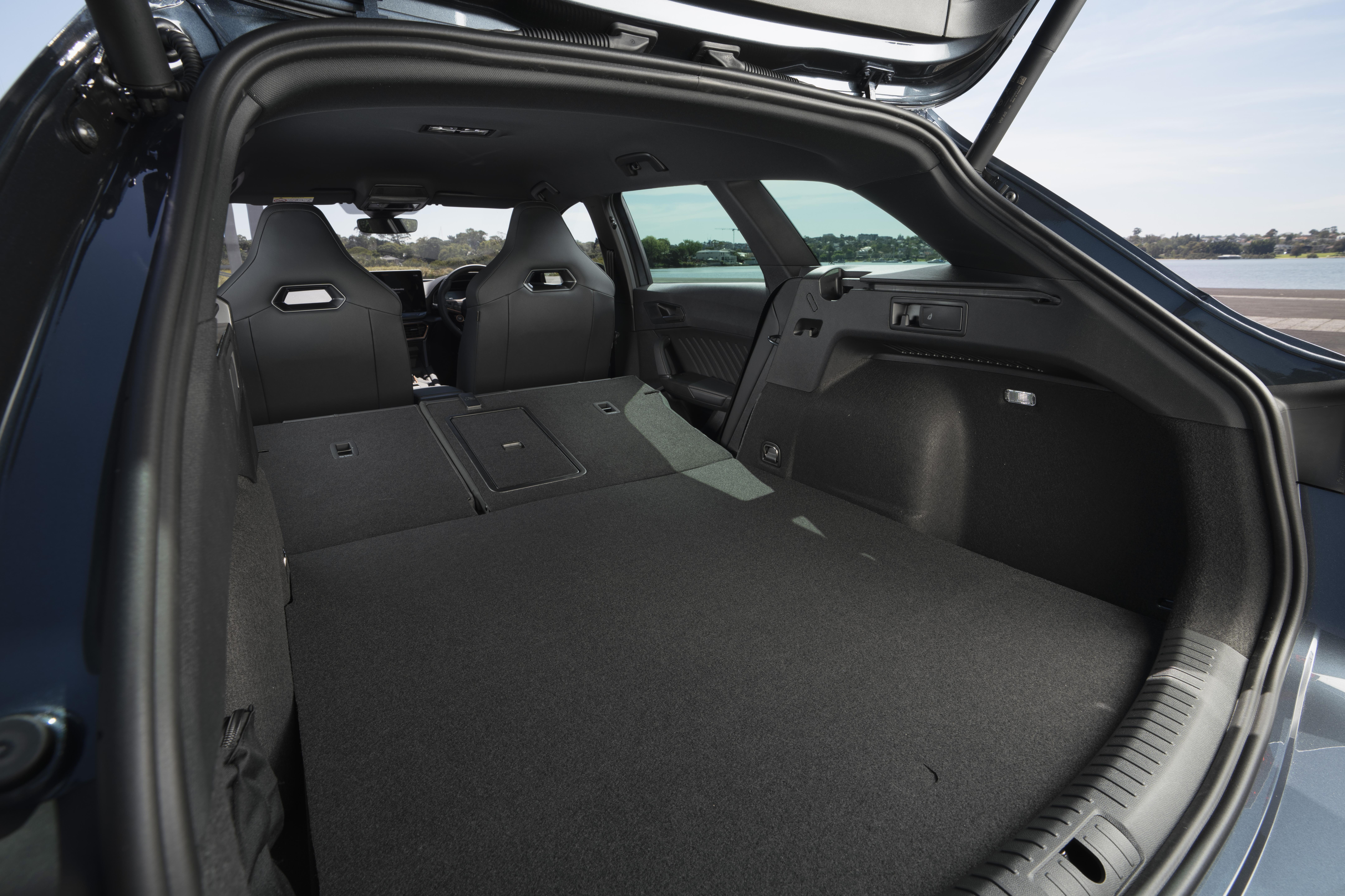 Further back, the Leon Hatch offers 344 litres of cargo capacity with the rear seats up, and 888L with them folded down. The Sportstourer VZe ups those figures to 470L and 1045L respectively – noting the big battery under the load floor.