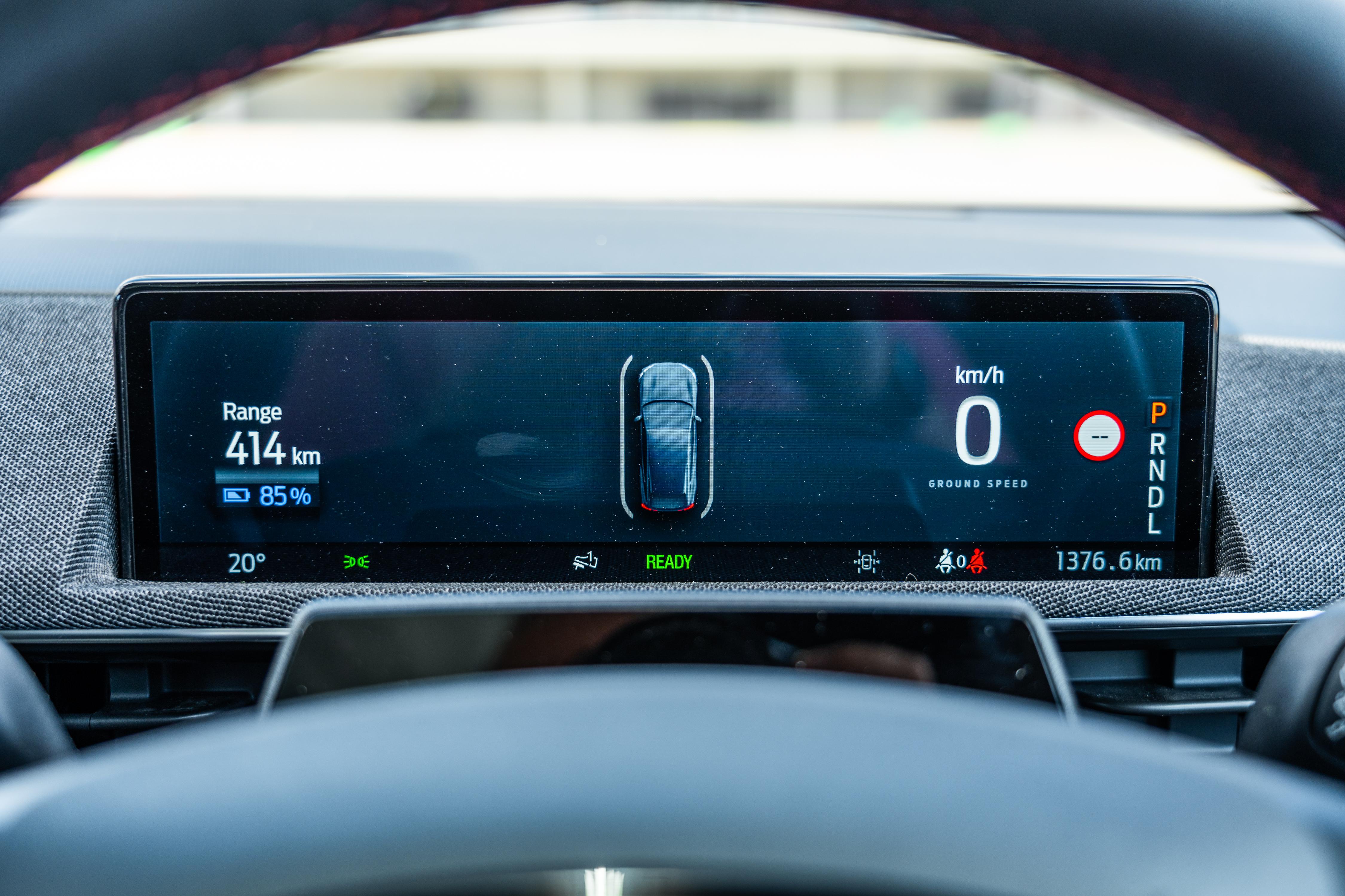 The other screen is the slender 10.2-inch unit in front of the steering wheel. This is a tidy display with minimalist graphics, presenting only the most critical information but offering limited customisation.
