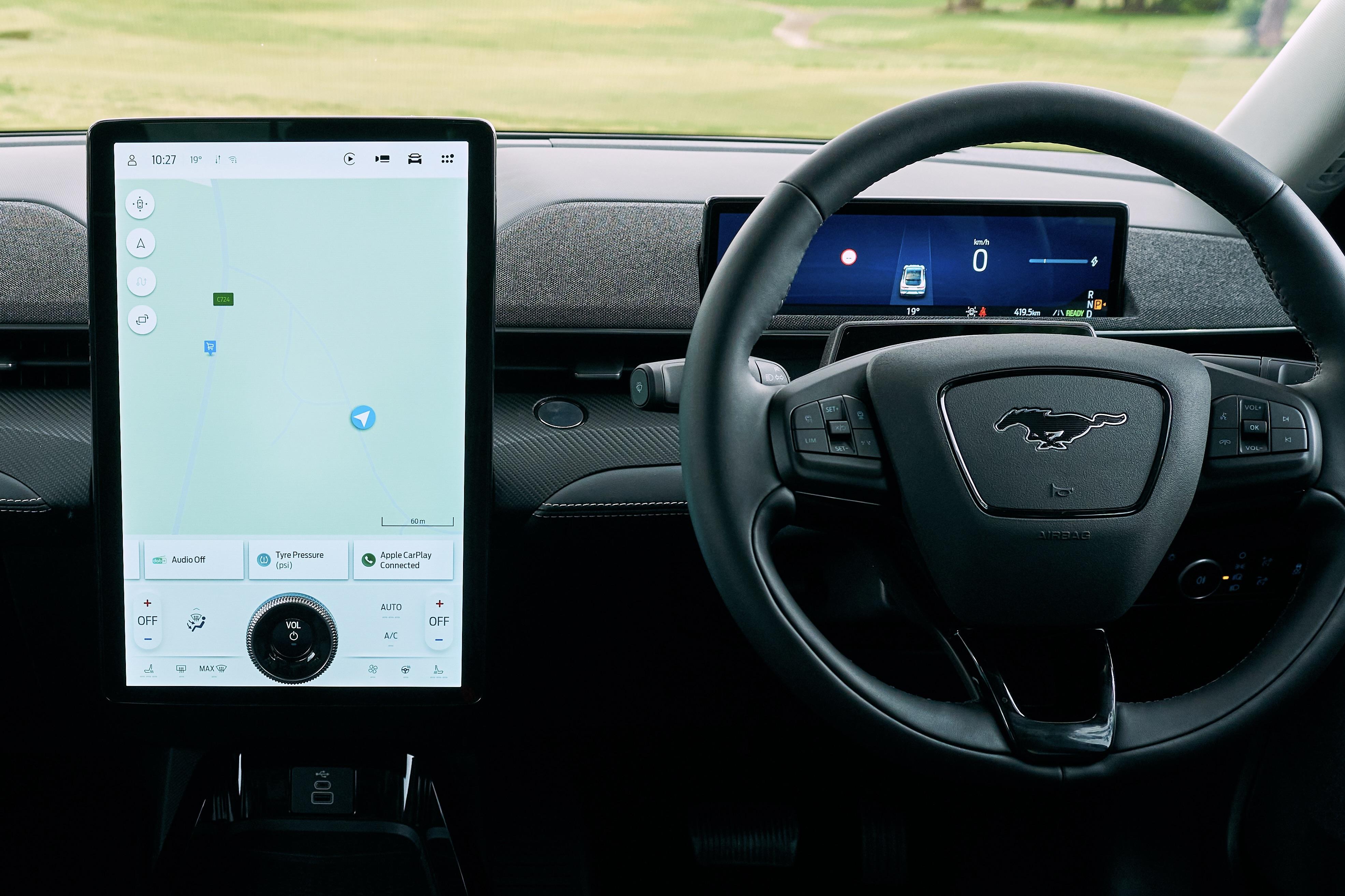 The simple shapes, large screen, and otherwise spartan layout are all hallmarks of modern EV interior design. This trend was kick-started by Tesla but, unlike its fellow American brand, Ford has injected a little more tactility into its electric SUV challenger – but it’s not perfect.