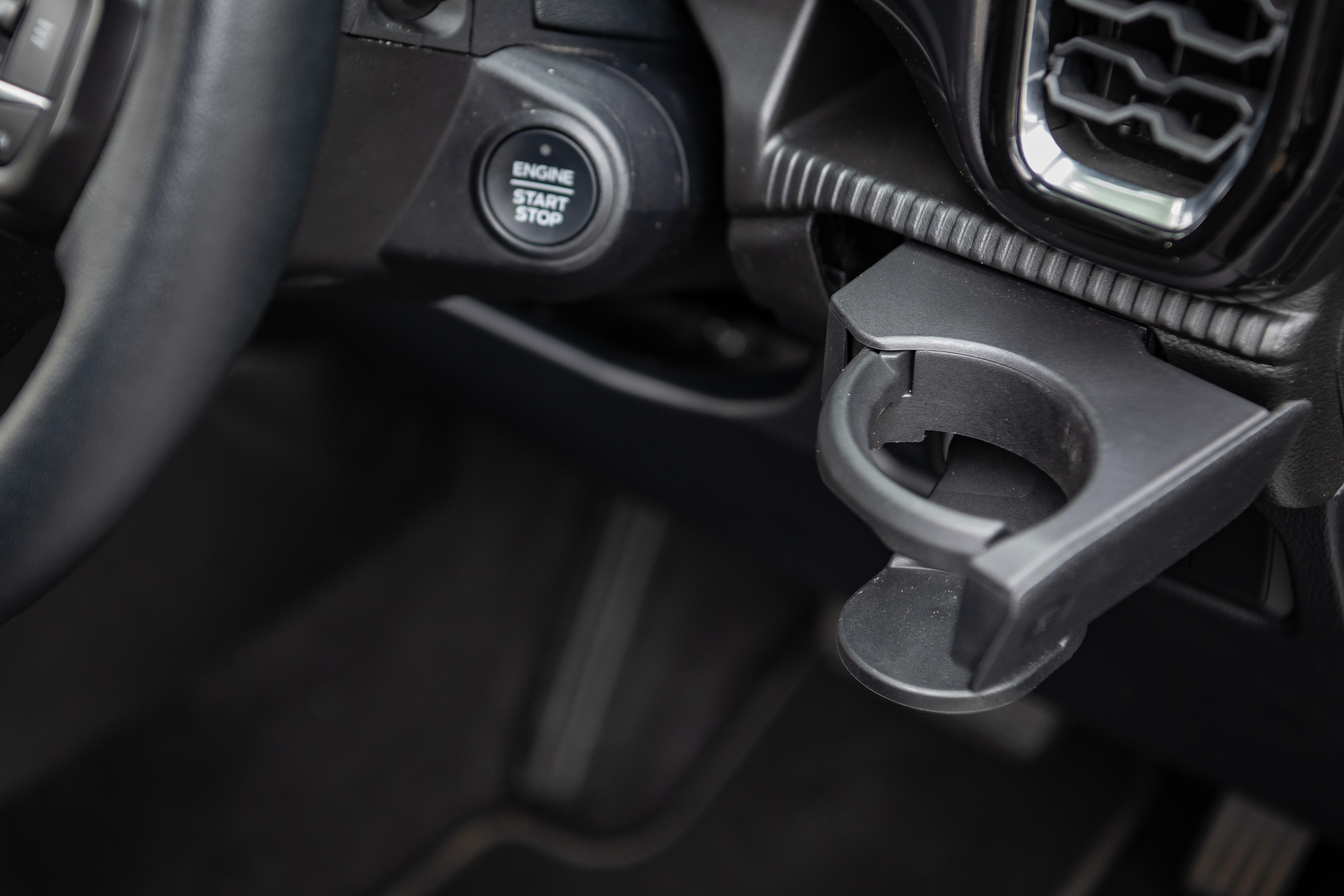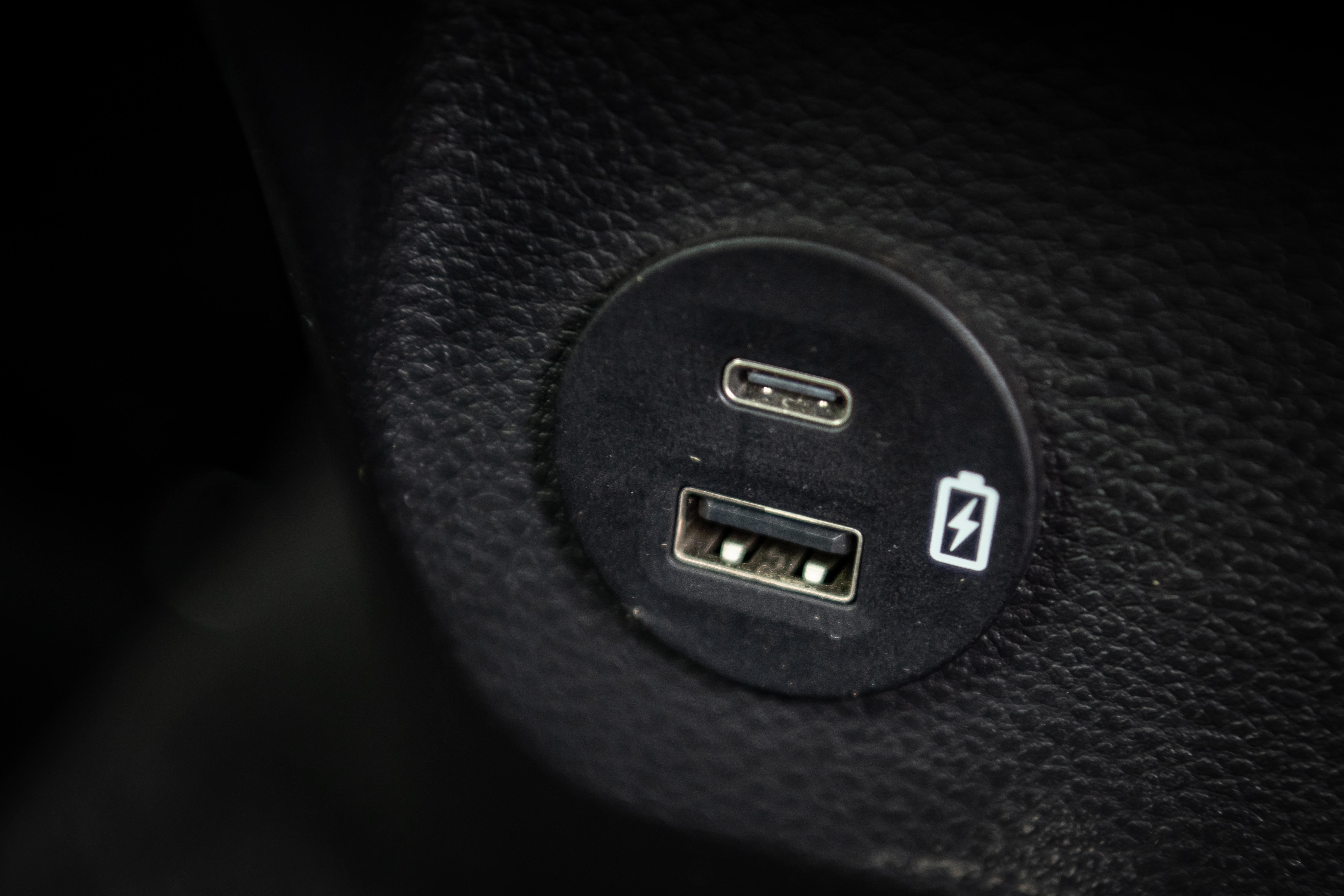 The cabin’s sheer practicality offsets any of this clunkiness. There are loads of storage options, including four cupholders (including two that fold out from the dashboard), a two-tier glovebox, a central cubby with wireless phone charging and two USB ports (USB-A and -C), and a nicely sized centre console storage box with a 12V outlet inside.
