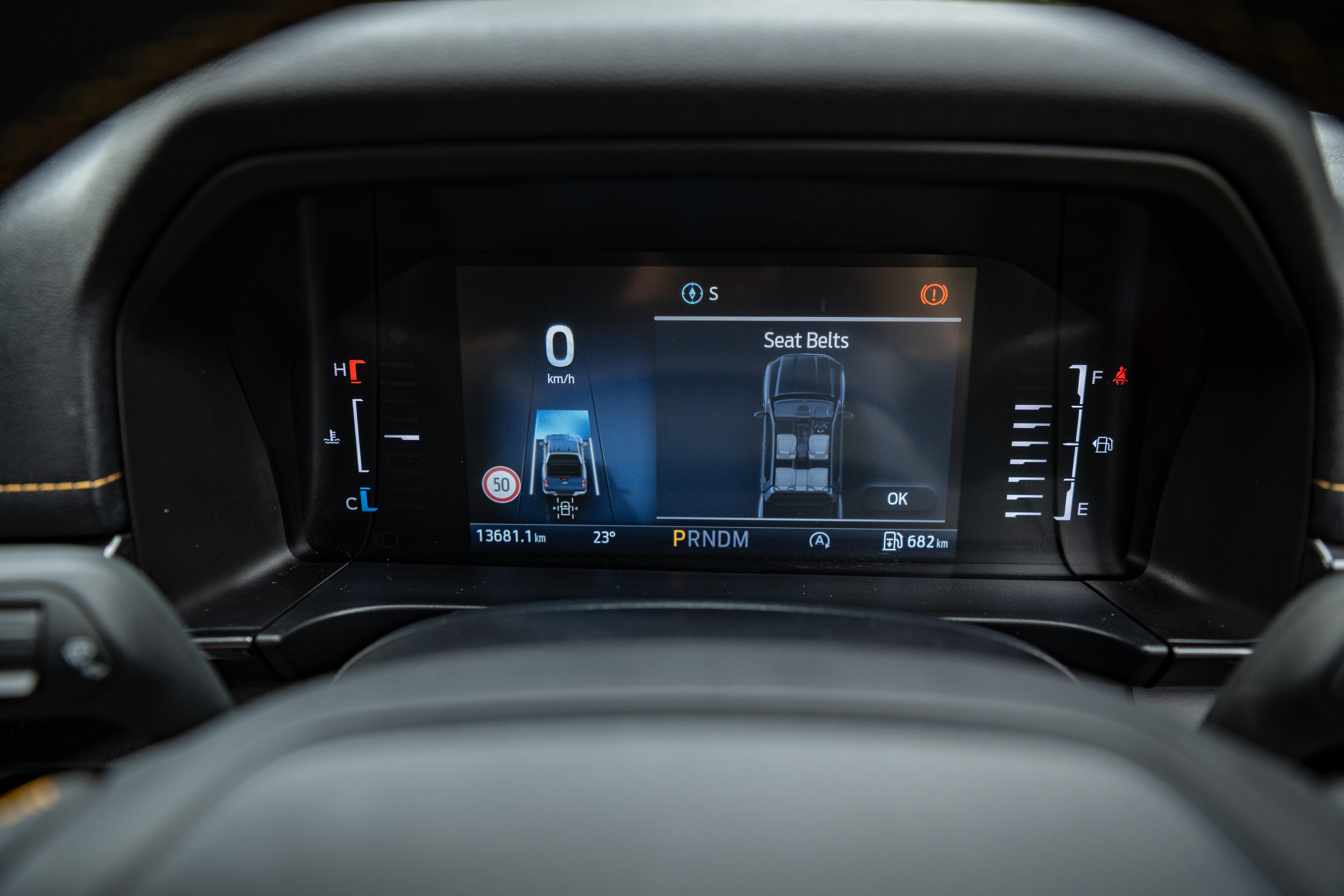 It’s complemented by the sparing use of piano-black plastic, black leather, and subtle gunmetal-grey pieces, while the black headliner makes everything feel all the more premium. The Wildtrak-specific orange stitching and embroidery is also quite tasteful.