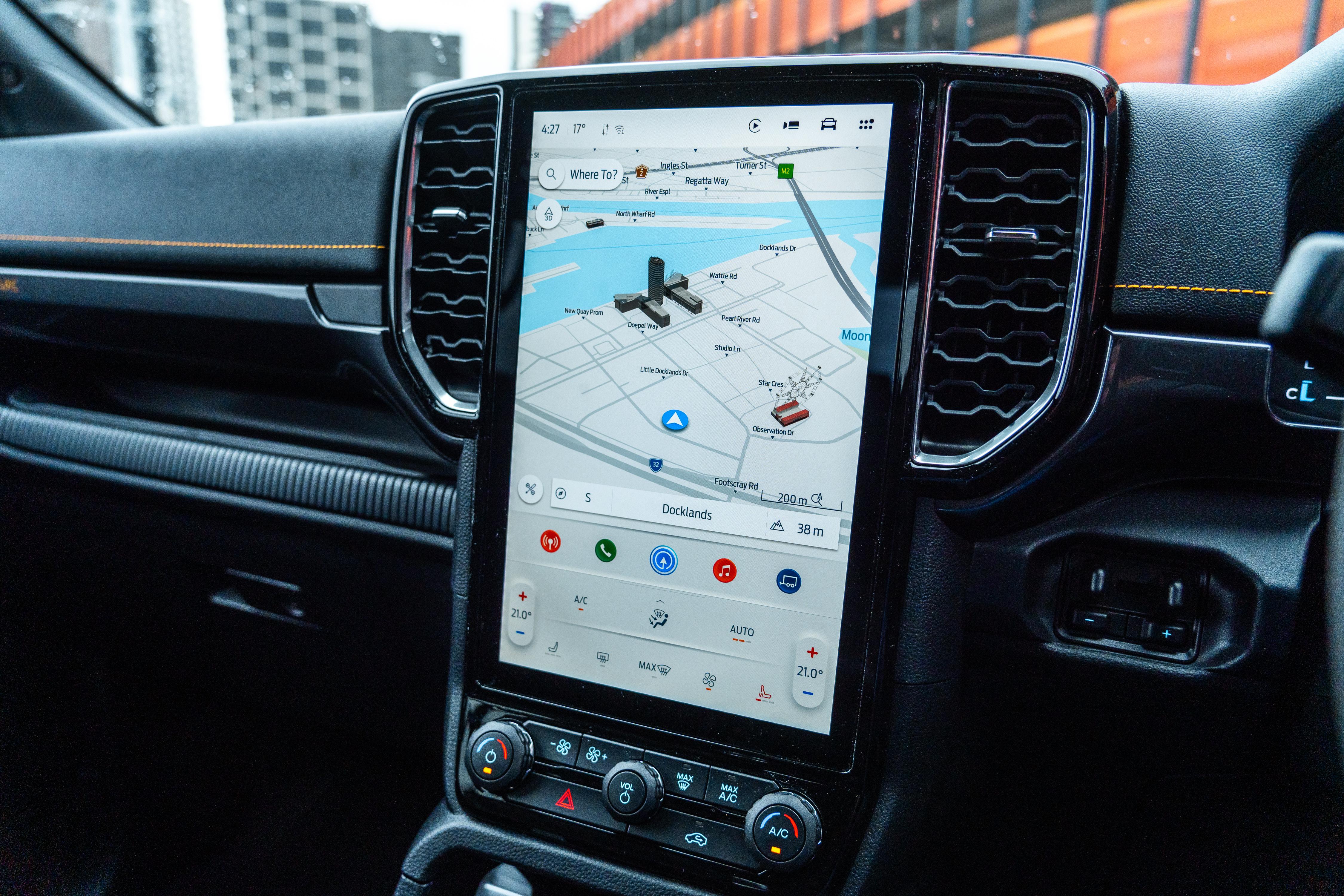 Then there’s the tech. The Wildtrak is the cheaper Ranger in the lineup to get the larger 12.0-inch infotainment touchscreen, up from the 10.1-inch unit fitted in every trim level below it.