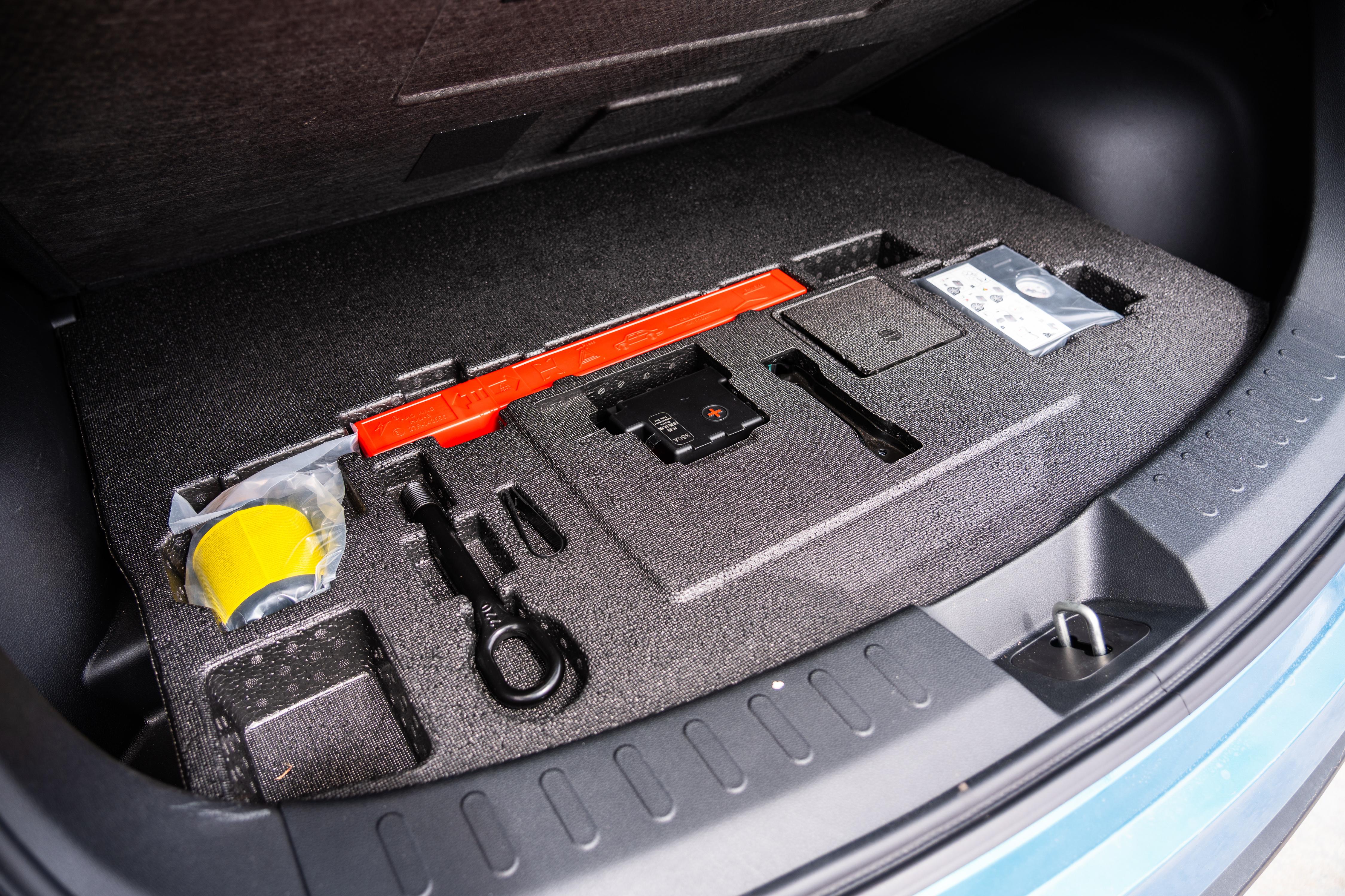 Unfortunately, all hybrid Jolions only get a tyre repair kit, a downgrade from the space-saver spares in petrol variants. There’s no extra space under the floor either; instead, there’s a large block of polystyrene holding various recovery gear in place.