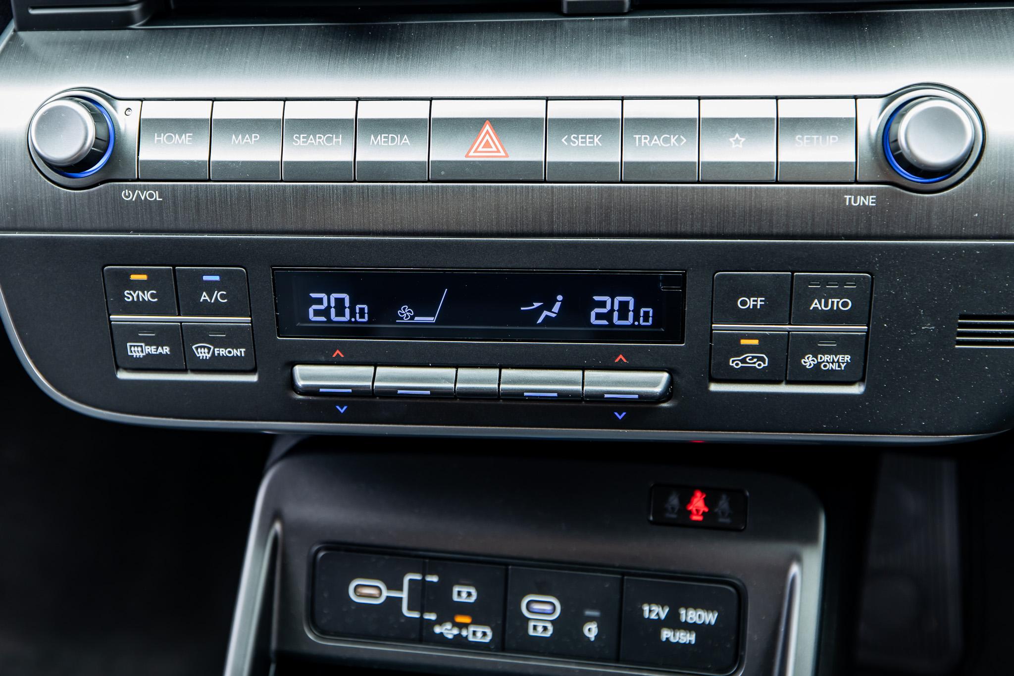 Further amenities include a set of USB ports and directional air vents. Nice…