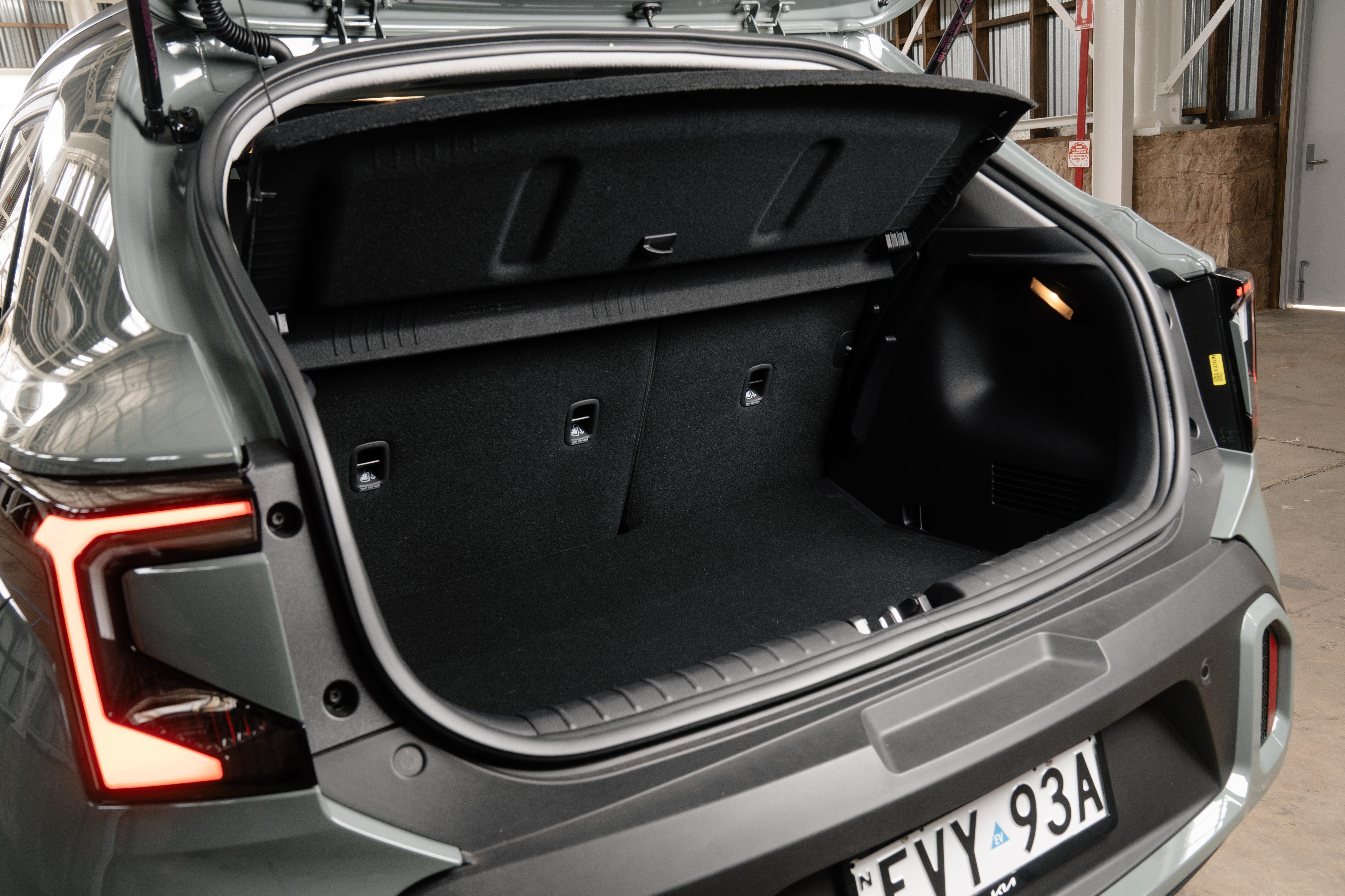 For the technical buffs, Kia Australia says the lithium-ion battery under the boot has an operating voltage of 30-51.6 volts, a rated capacity of 9.8Ah or 436.5Wh, a max charge/discharge power of 12.5kW at 50 per cent state of charge (SOC), and an operating temperature bracket of -35 to 60 degrees Celsius.