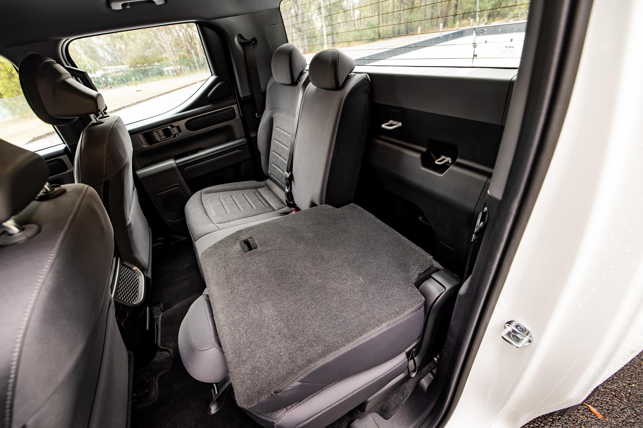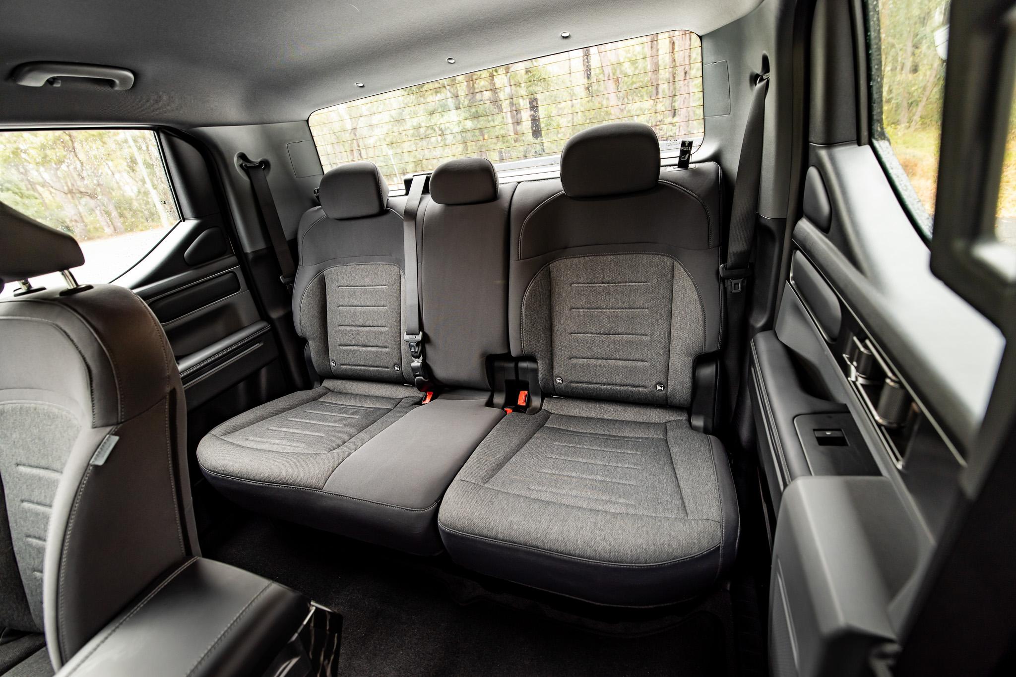 Rear seat space is very good in the Kia Tasman dual-cab, and so is the seat comfort. Some other utes don’t offer quite the same level of cush that this back seat does.