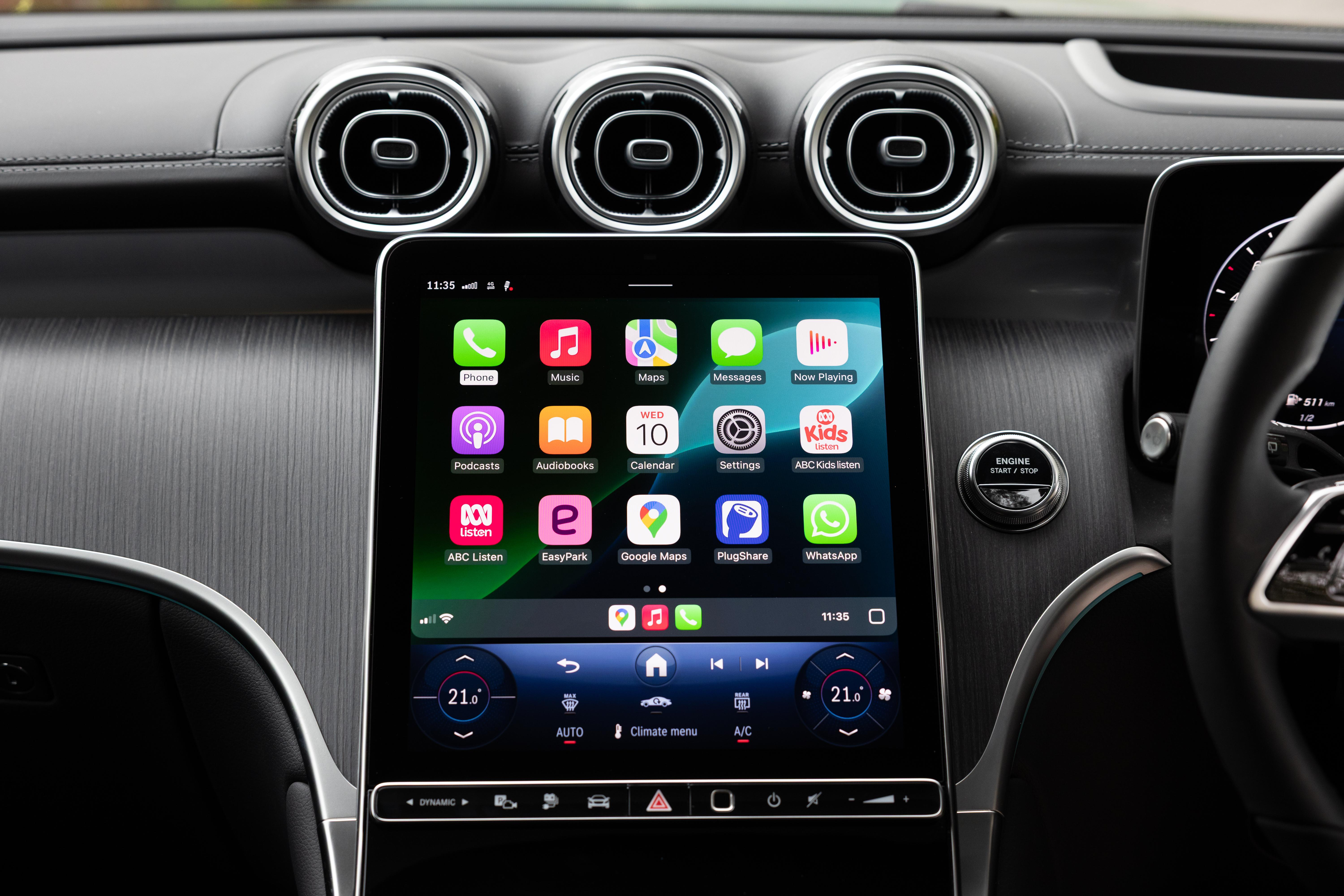 Shared by many current Mercedes-Benz products, the upright tablet-style screen is easy to use and loaded with useful applications including detailed navigation, YouTube, Amazon, Spotify, Apple Music, weather, news, and games. Each app is easily identifiable with large text and image labels, so you’ll never get lost looking for something.
