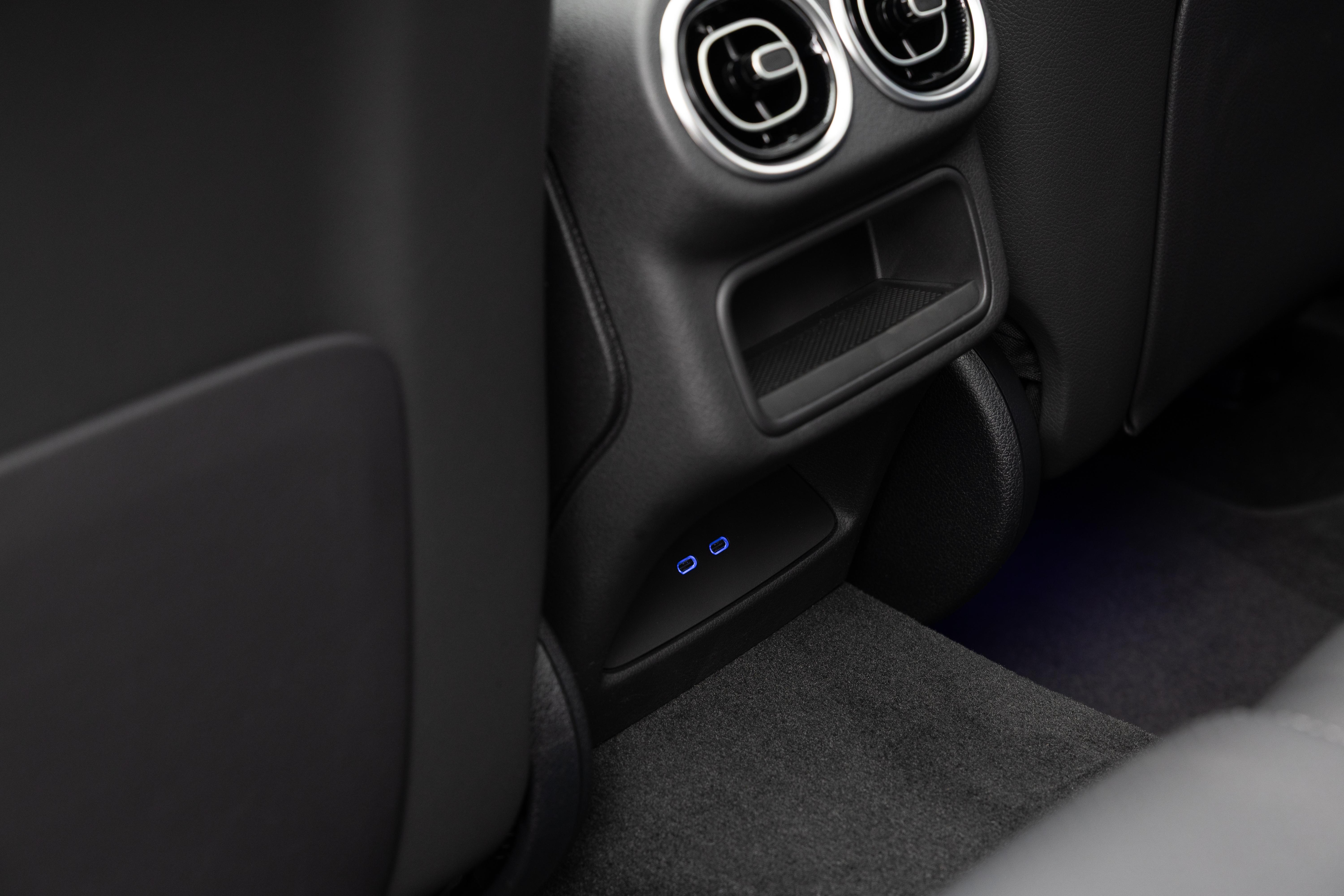 Right next door is a deep centre console housing two USB-C outlets and a removable coin tray, while the glovebox and door bins are also spacious storage areas.