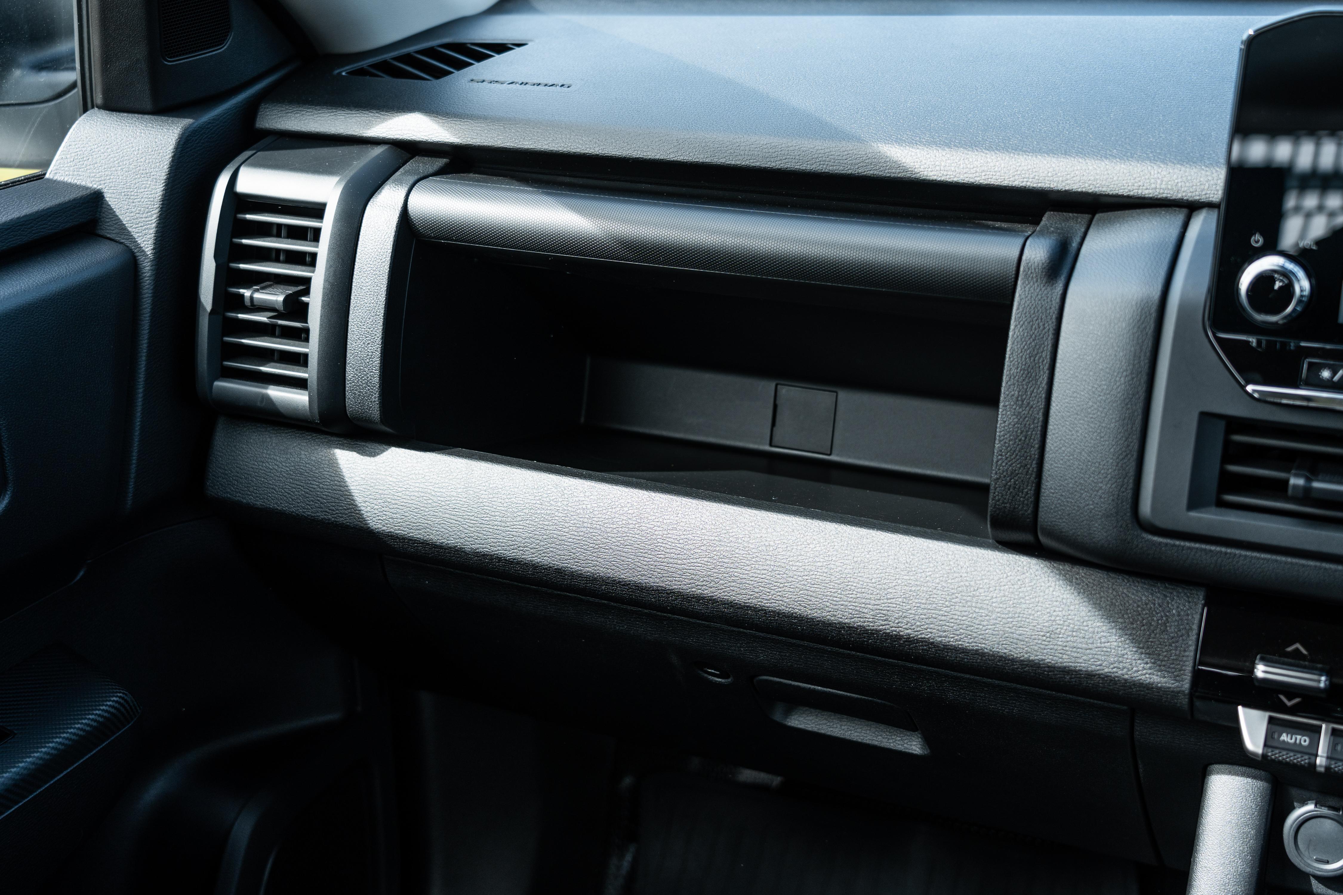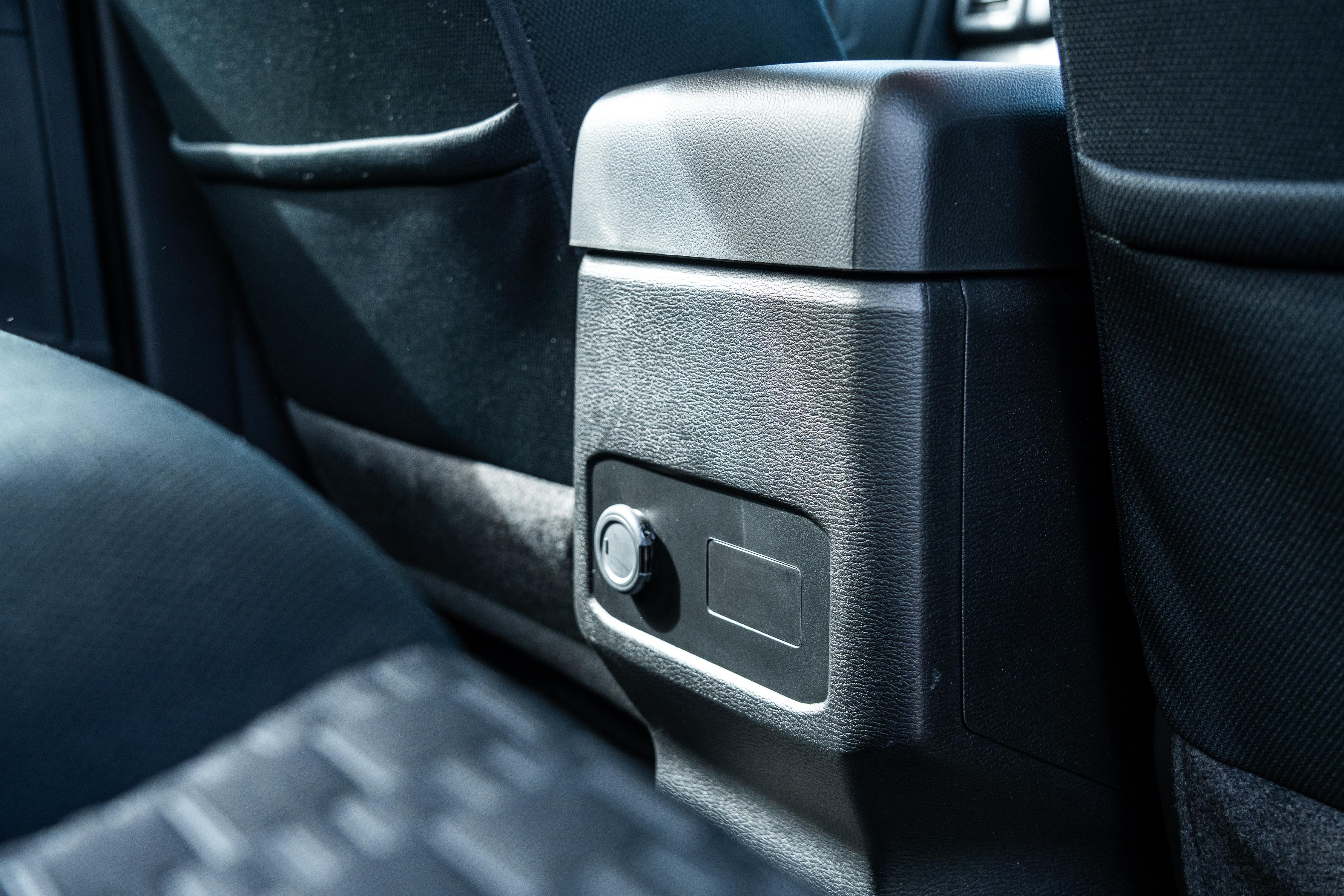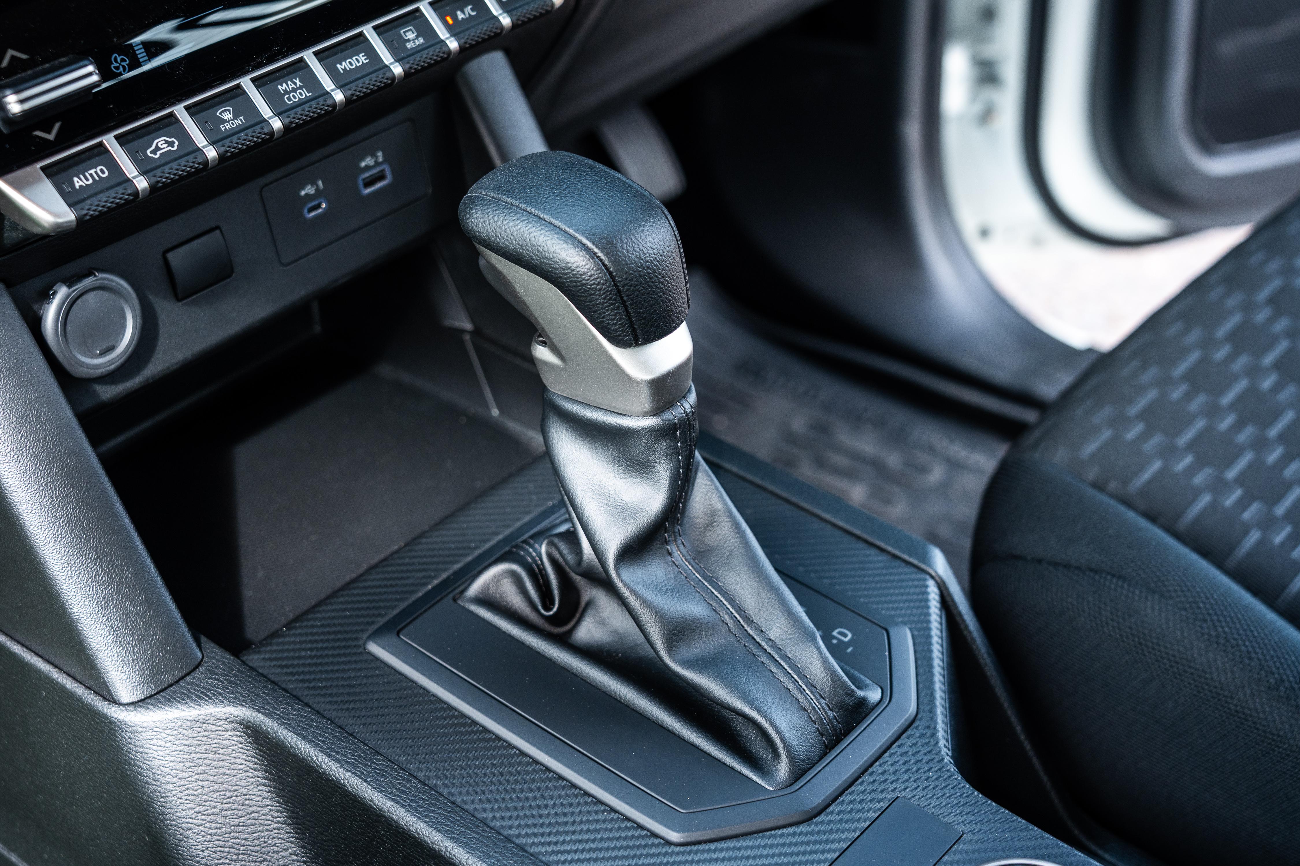 The front of the cabin comes with a rotary 4×4 controller (in 4×4 models like our tester), a nicely sized storage box under the central armrest, and a sunglasses holder in the ceiling.