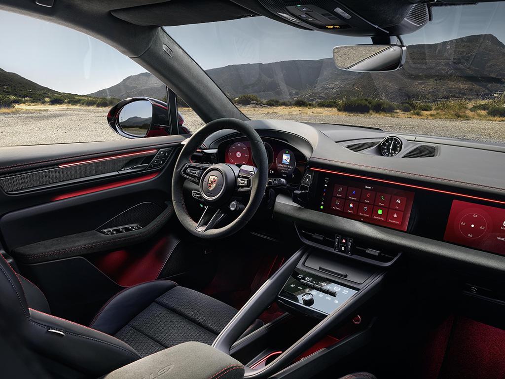 The cabin brings the same new colour options, led by Carmine Red, Slate Grey and Lugano Blue, and there’s GTS lettering on the Race-Tex trimmed seats and steering wheel.