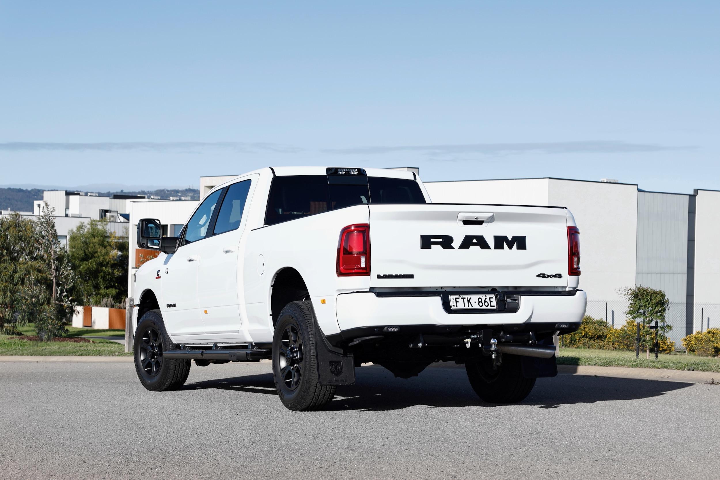 The latest Ram 2500 and 3500 gain a number of premium features that were previously optional in the US, including the full Black Pack, comprising a black grille, wheels, side mirrors and side steps as well as a power-bulge Sport Hood.