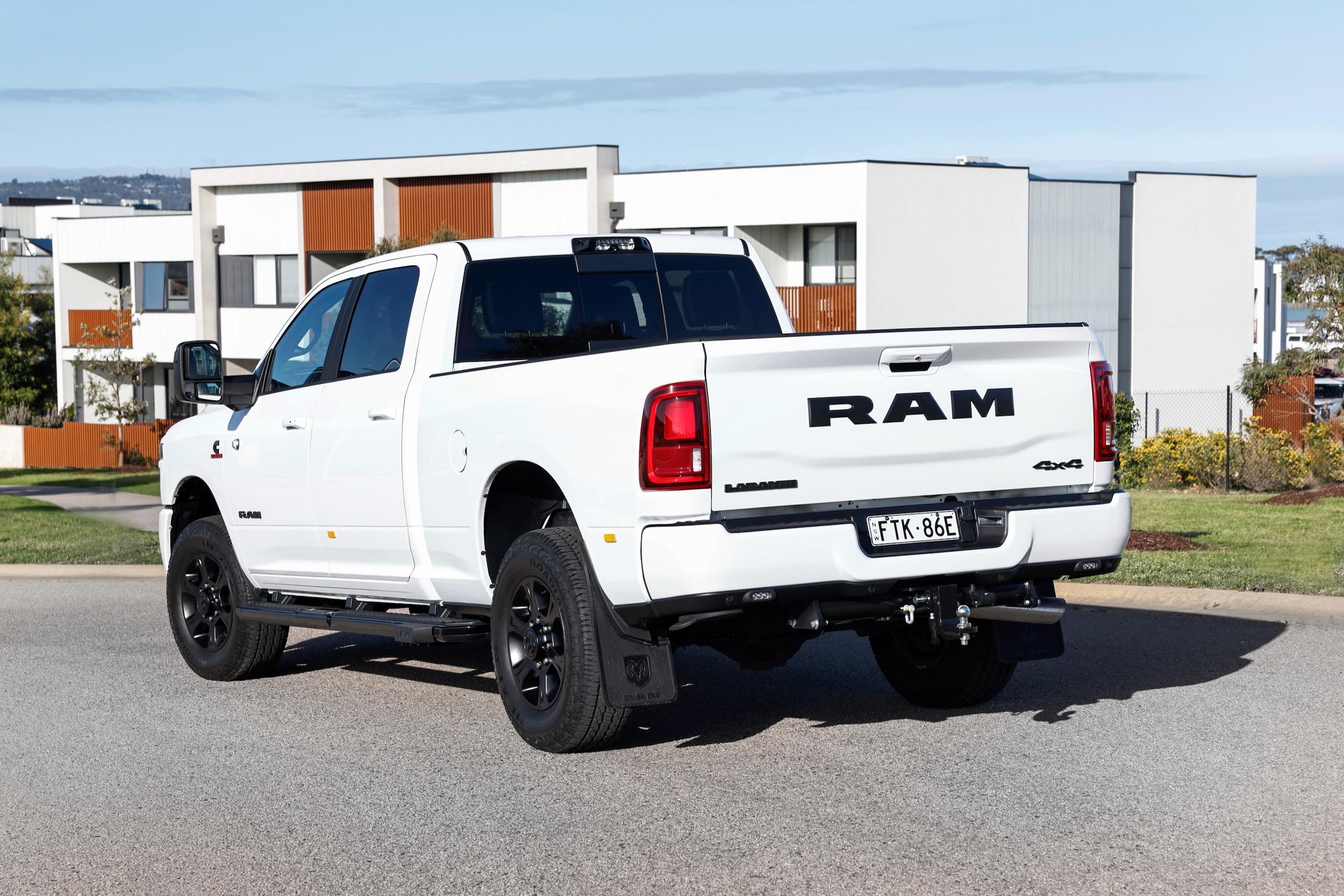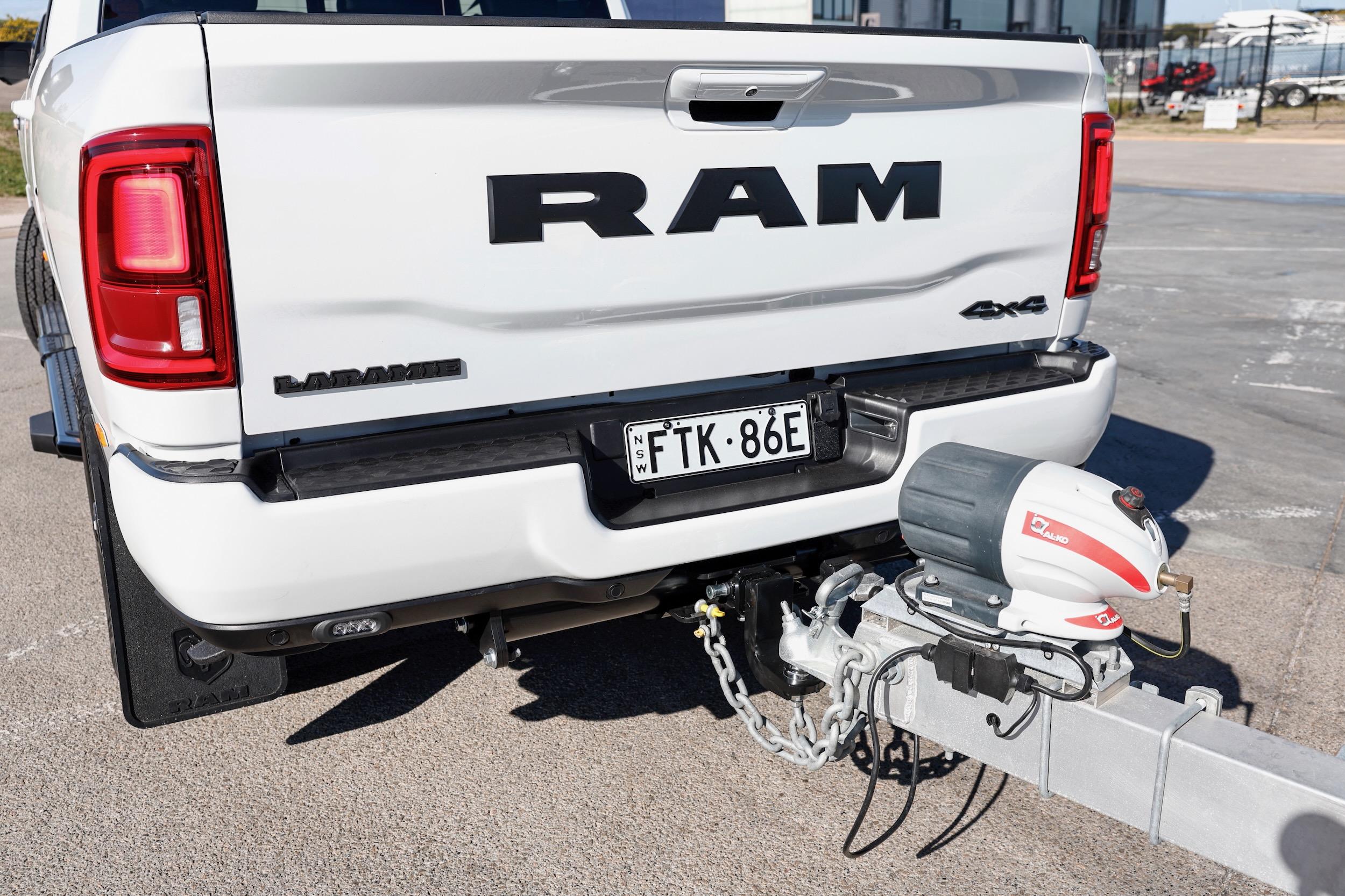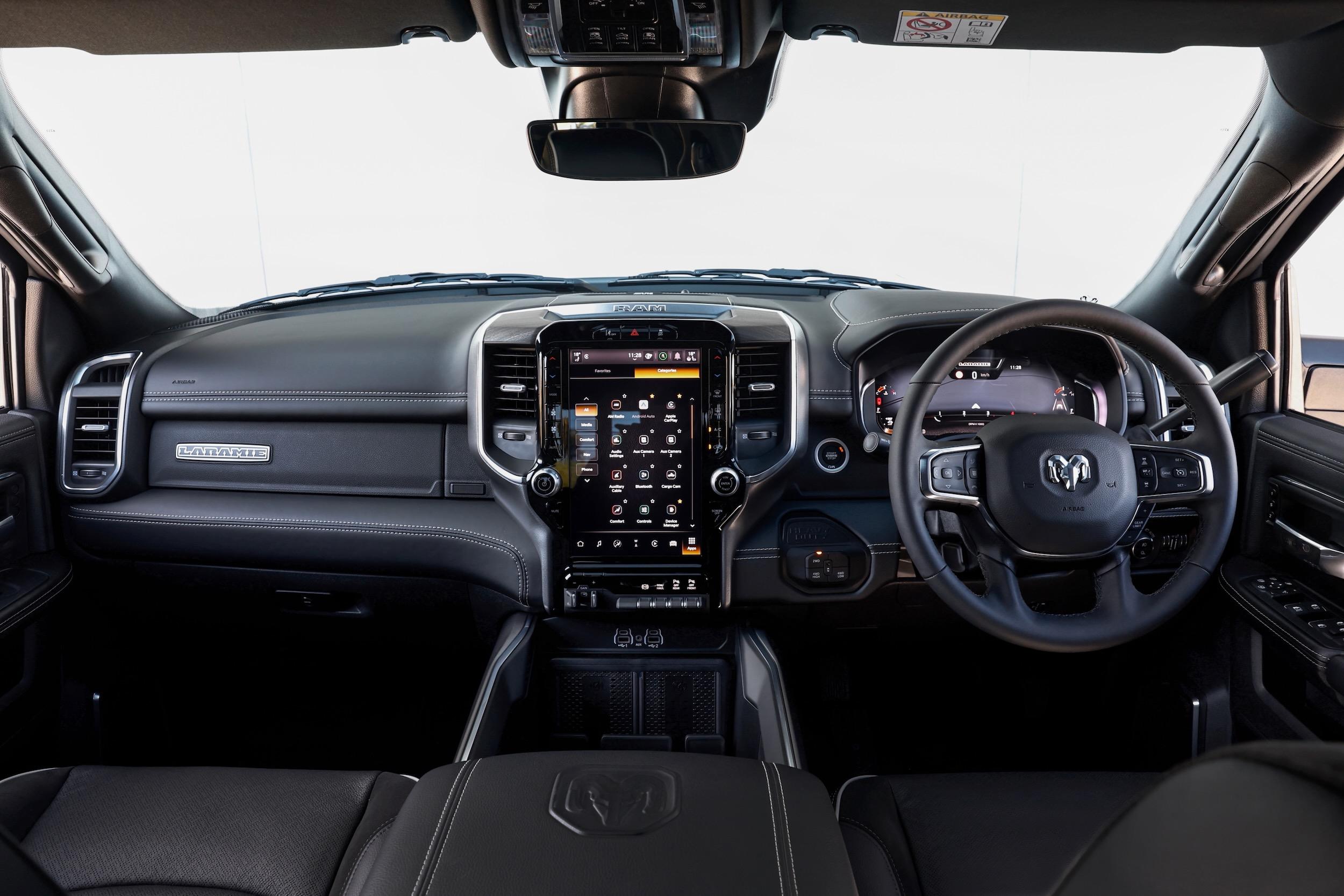 Ram says unladen 0-100km/h performance improves to about 7.2 seconds, and the transmission defaults to second‑gear starts to trim fuel use, switching to first when it detects heavy loads. An exhaust brake is standard for long descents while towing.
