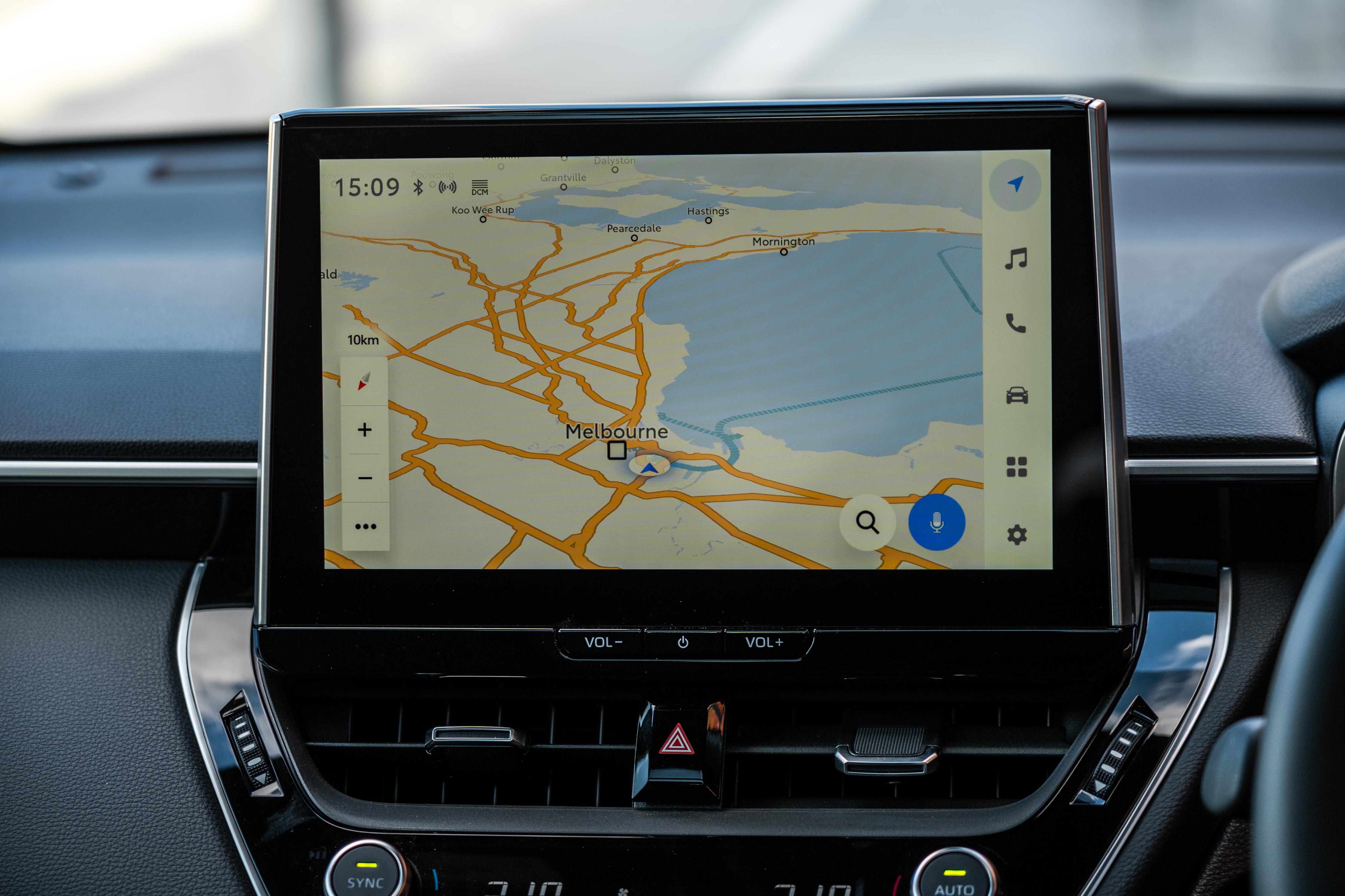 After you’re settled, you’ll find most interior controls are physical. The quality-feeling steering wheel features a range of hard plastic buttons, while a physical climate control system is fitted in the middle, effectively identical to what is found in the regular Corolla.