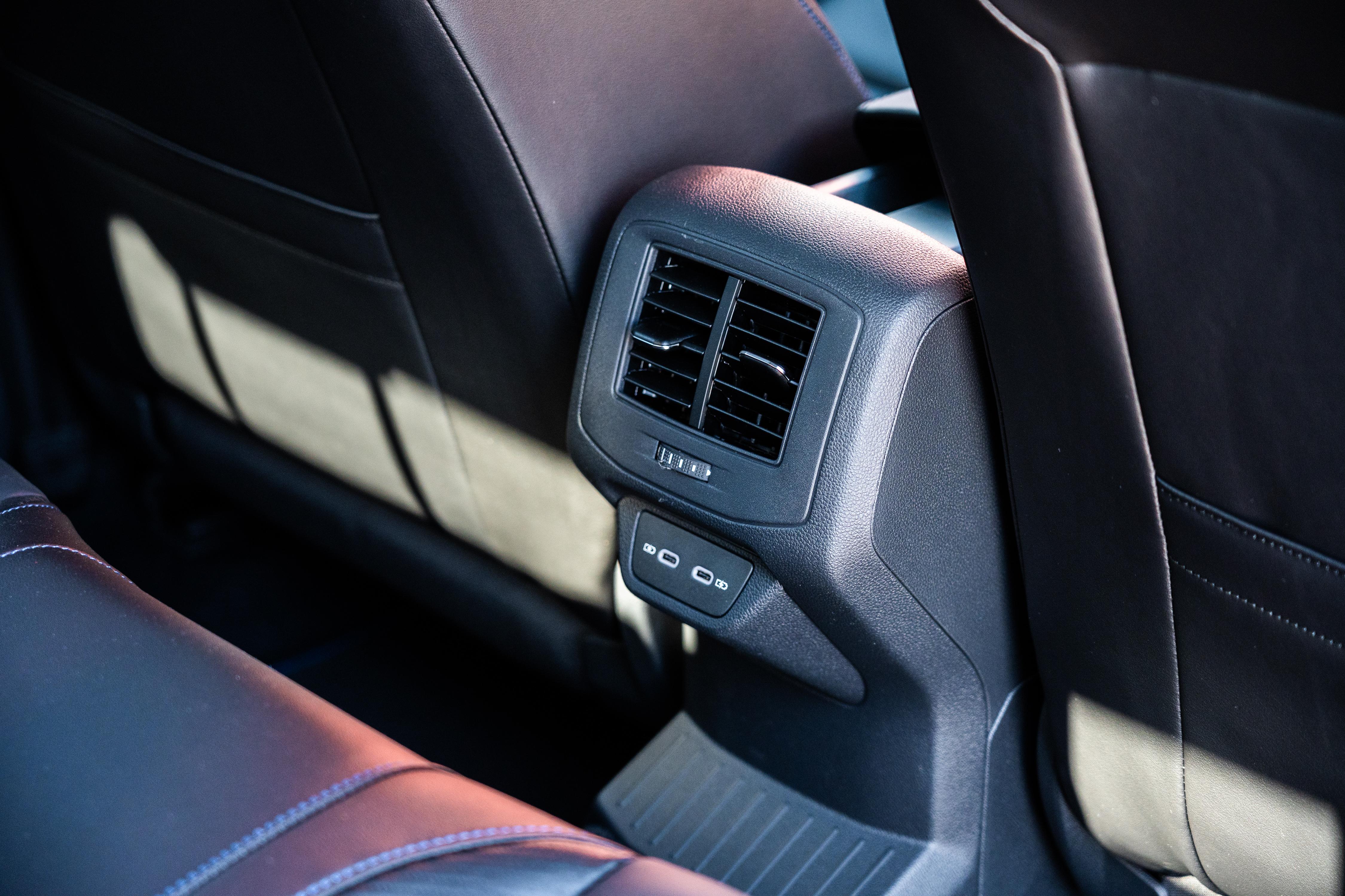 Rear-seat occupants are well catered for with dual USB-C charging ports and air vents on the back of the centre console. There’s also a fold-down centre armrest that reveals a pass-through to the boot, and it offers cupholders as an alternative to the bottle holders in the doors.