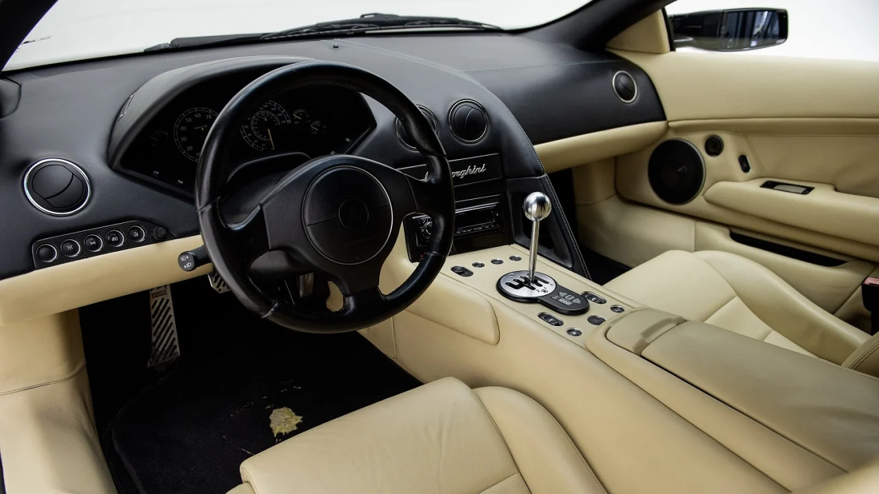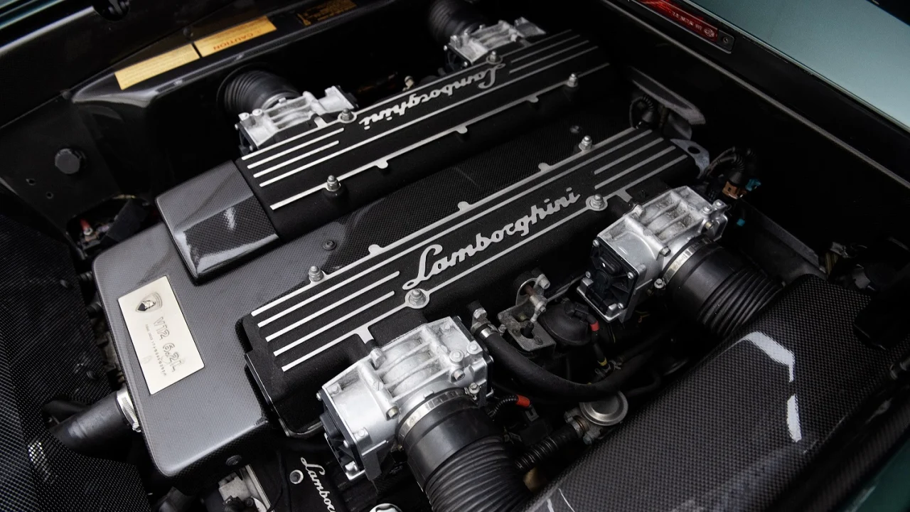 In English, the word murciélago translates to “bat,” which is all the more believable when the engine’s side-mounted intakes extend outward, forming what some have called “bat wings.” Those feed a 6.2-liter V12 that’s larger than the engine in the Diablo. Equipped with a variable-geometry intake system and variable intake and exhaust valve timing, it generates 575 horsepower and 479 lb-ft of torque, making it more powerful than its predecessor. Lamborghini paired the big V12 with all-wheel drive and the choice of two firsts for the company: a six-speed manual gearbox or a six-speed automated manual, aka “e-gear.”