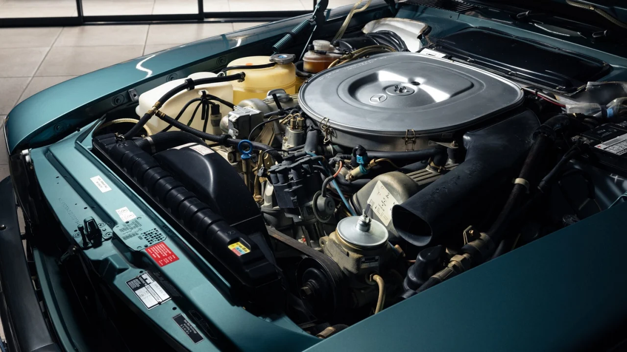 Like other R107s, the 500 SL is fairly common. According to the Mercedes-Benz Corporate Archive, the automaker produced 11,812 of them between April 1980 and August 1989. Those numbers aside, Mr. Hough’s SL was a singularity. The Metallic Blue-Green paint was untouched by the effects of sunlight. Inside, the leather still had its new-car smell. The SL even had its factory-applied Waxoyl in the engine bay around the 5.0-liter V8 and on the exhaust.