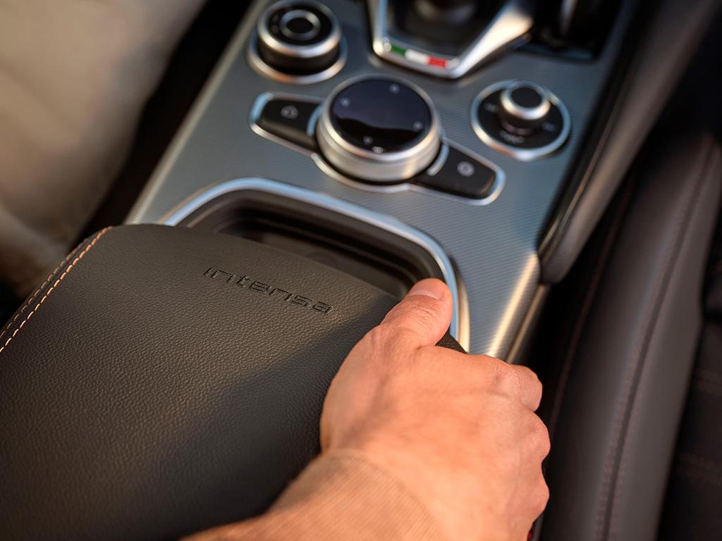 The interior in all three limited editions includes head restraints with embroidered Alfa Romeo logos, a two-tone steering wheel and embroidered Intensa logos throughout.