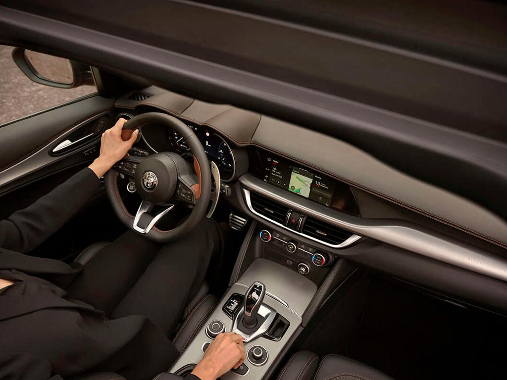 Intensa versions of the Giulia and Stelvio also come with tan-stitched leather seat trim, while all three have a sunroof fitted as standard.