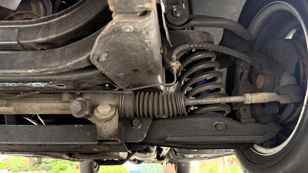 Many of the upgrades to this truck can be found closer to the pavement, such as the Ford Mustang II independent front suspension, power steering rack, lowering springs, and power front disc brakes. The fuel tank was relocated to underneath the bed, which has an opening for the fuel door.