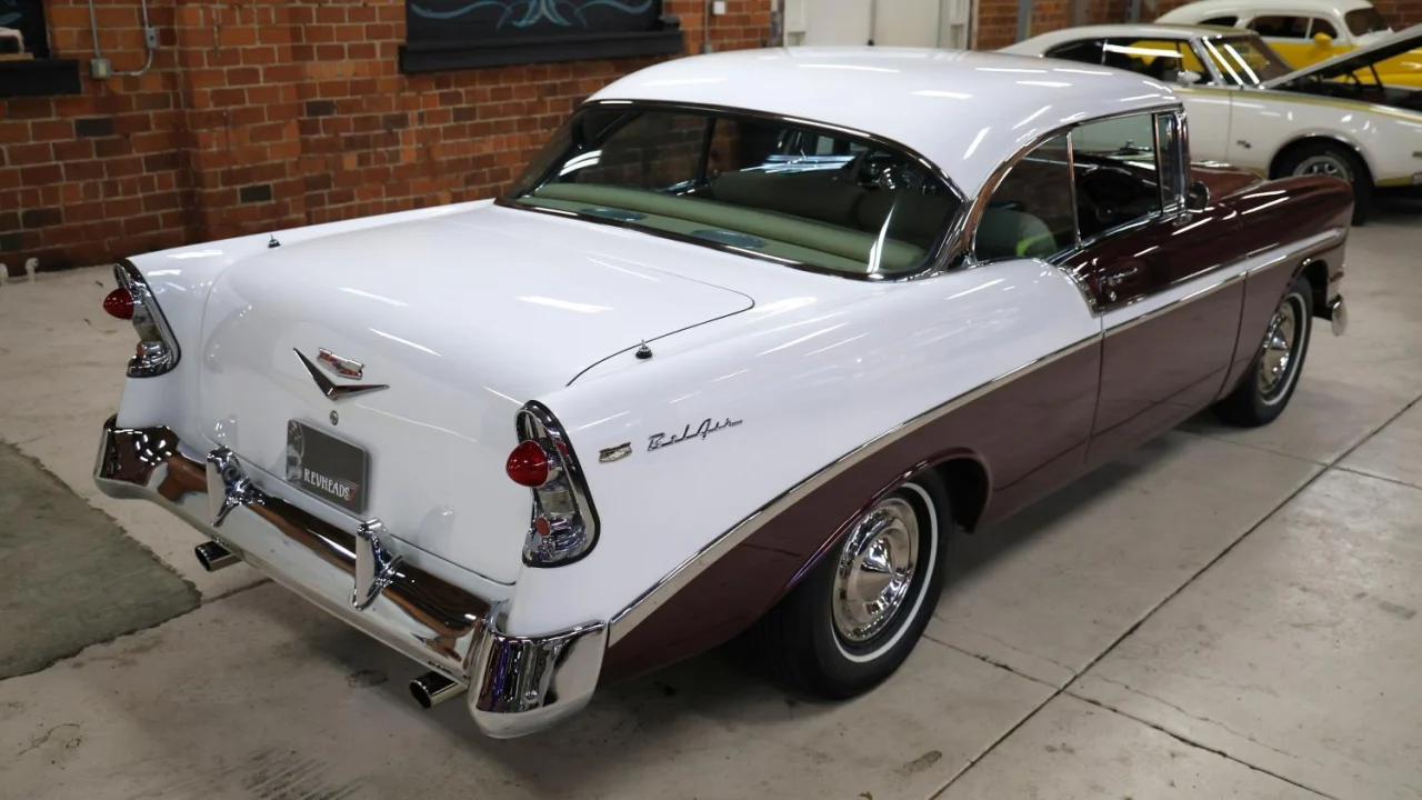 Currently listed on AutoHunter is this restored 1956 Chevrolet Bel Air Sport Coupe. Power comes from a BluePrint Engines 383 stroker small-block backed by an equally new 700R4 automatic transmission. Features include factory metal, floor pans, trim, bumpers, wheel covers, and glass, aftermarket air conditioning, retro-look AM/FM/Bluetooth stereo, Positraction with 3.55 gears, and more. Painted two-tone Dusk Plum and India Ivory over a light beige cloth and leather interior, this classic Bow Tie comes from the selling dealer with a clear title.