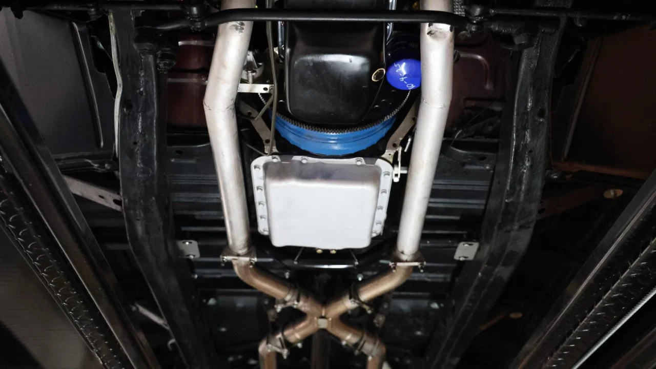 The undercarriage features a 10-bolt rear housing 3.55 gears with Positraction—a nice combination. Also hiding underneath are Hydroboost front disc brakes and a dual exhaust system.
