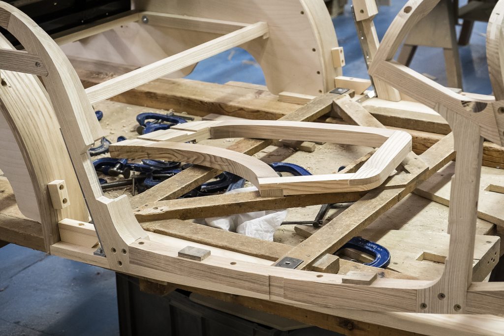 Also keep in mind that the Morgan is a complicated car to restore. The frame for the body panels is made of ash wood, which over time can rot if not properly preserved. In the era in which this car was built, the wood was not as well treated, so may be suspect and in need of replacement on any Morgan from the 1930-70s. Happily, Morgan Motors offers complete kits for the wood, and it is now treated to make it last for much longer than it did in the past. That being said, someone still needs to put the pieces together, as you can see in the vintage factory photos below.