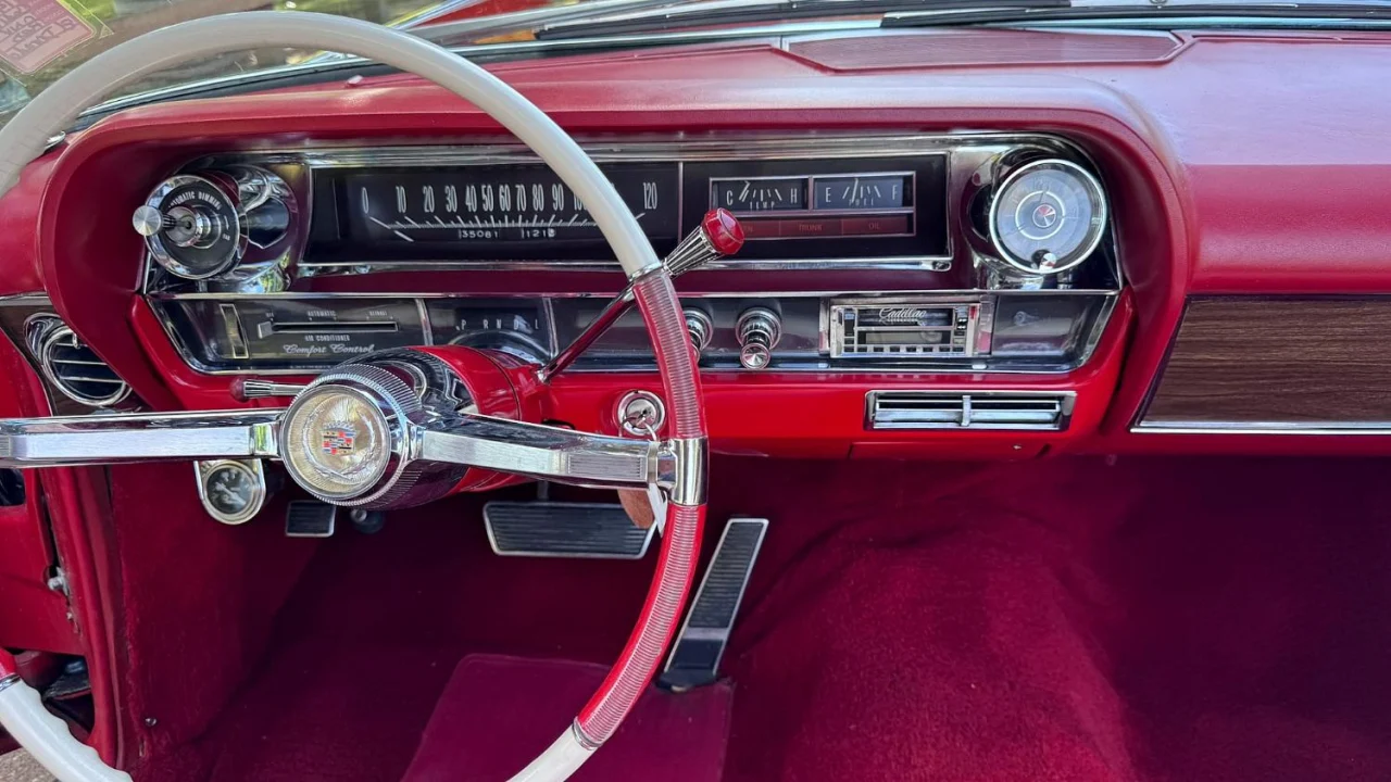 Currently listed on AutoHunter is this 1964 Cadillac Eldorado convertible. Powering this premium Caddy is a 429 V8 paired with a Turbo Hydra-Matic automatic—both new for 1964. Features include full power options, optional bucket seats and console, a tilt steering column, and more. Finished in bright red with a white top over a white and red vinyl interior, this top-of-the-line Cadillac convertible comes from the selling dealer with a clear title.
