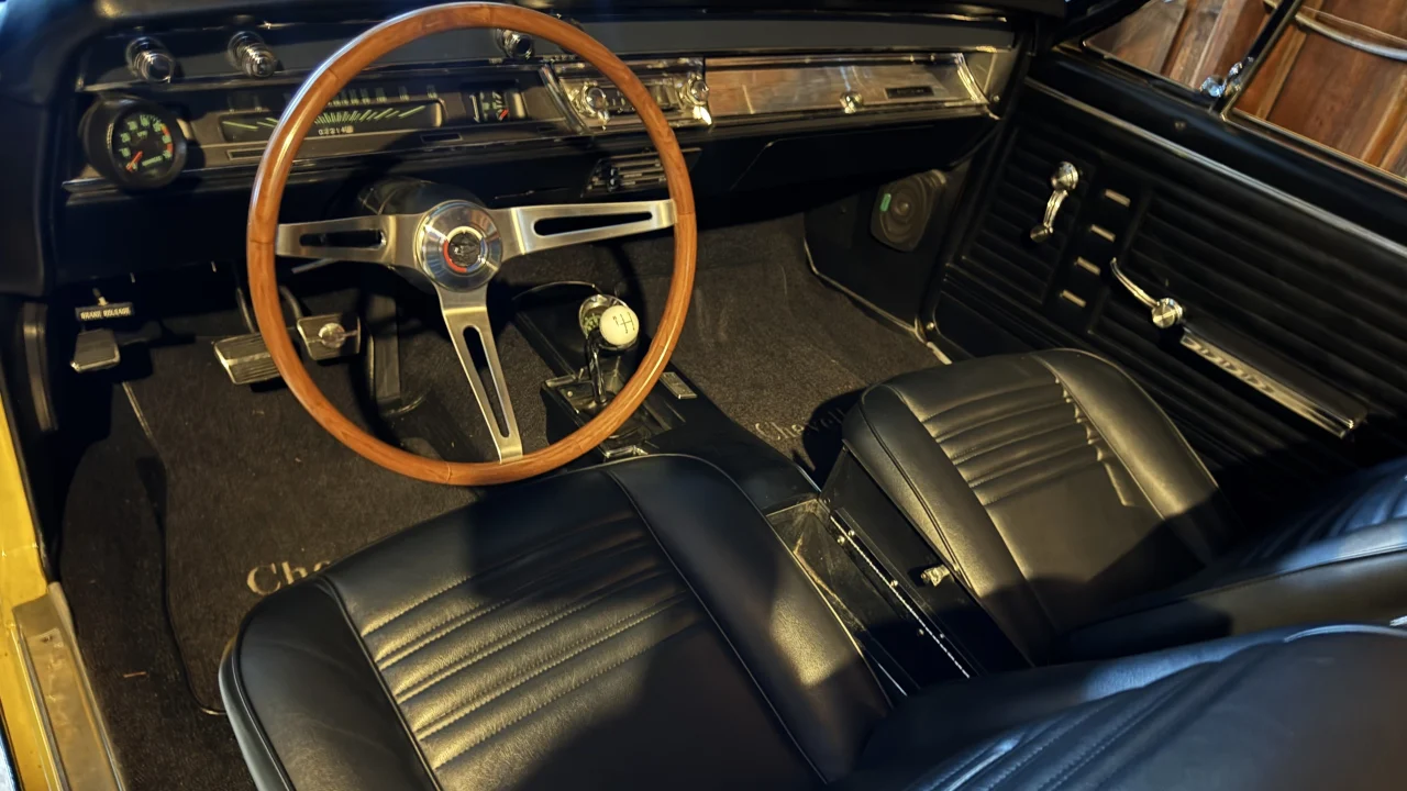A muscle car isn’t complete without a strong powerplant. This one comes with a professionally-built 396ci V8 mated to a Muncie manual transmission and a 12-bolt Positraction rear end. The odometer shows 2,214 miles, but the title reads mileage-exempt.