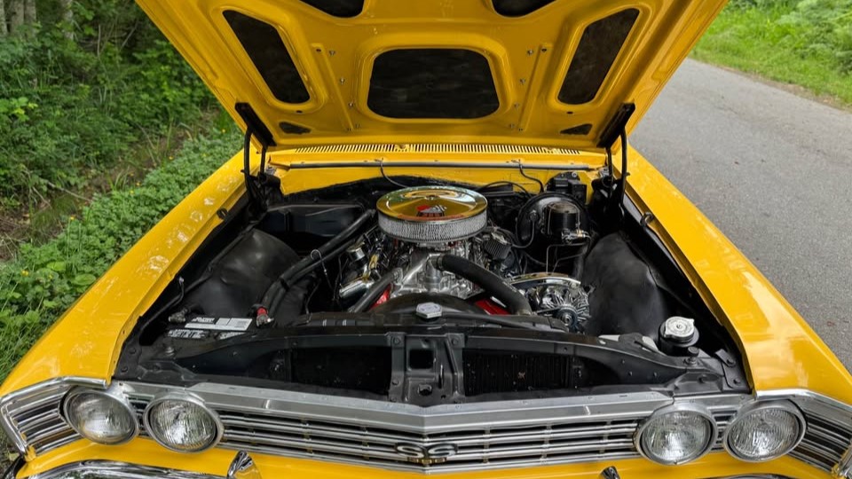 According to the trim tag, this car’s original color was Sierra Fawn with a white convertible top. Assembly took place the third week of October 1966 (happy 59th birthday!) in Baltimore. Many changes have taken place since then—during restoration, the color was changed to Daytona Yellow with a black convertible top. Exterior features include Super Sport and SS 396 badging, driver side mirror, and Rally wheels. The upholstery inside the cabin was changed from the original Medium Gold to black.
