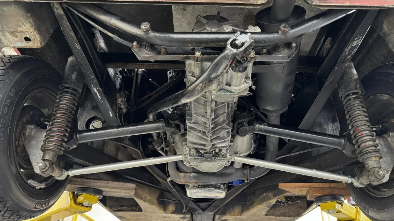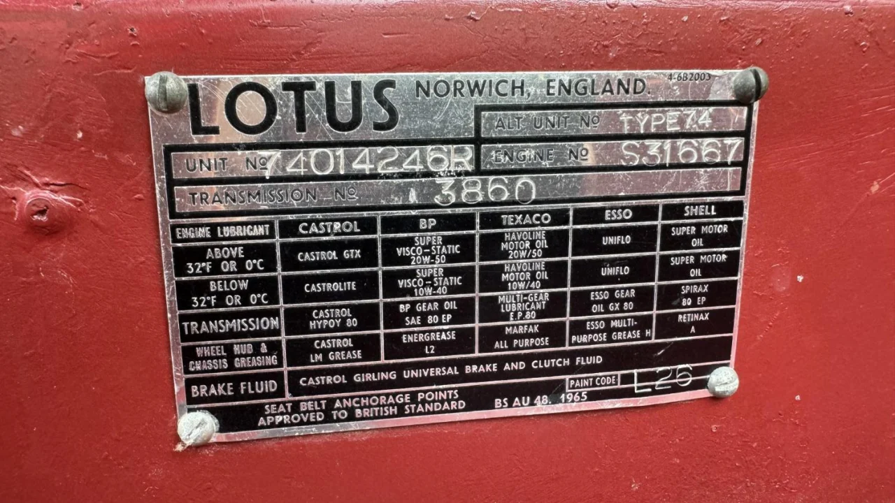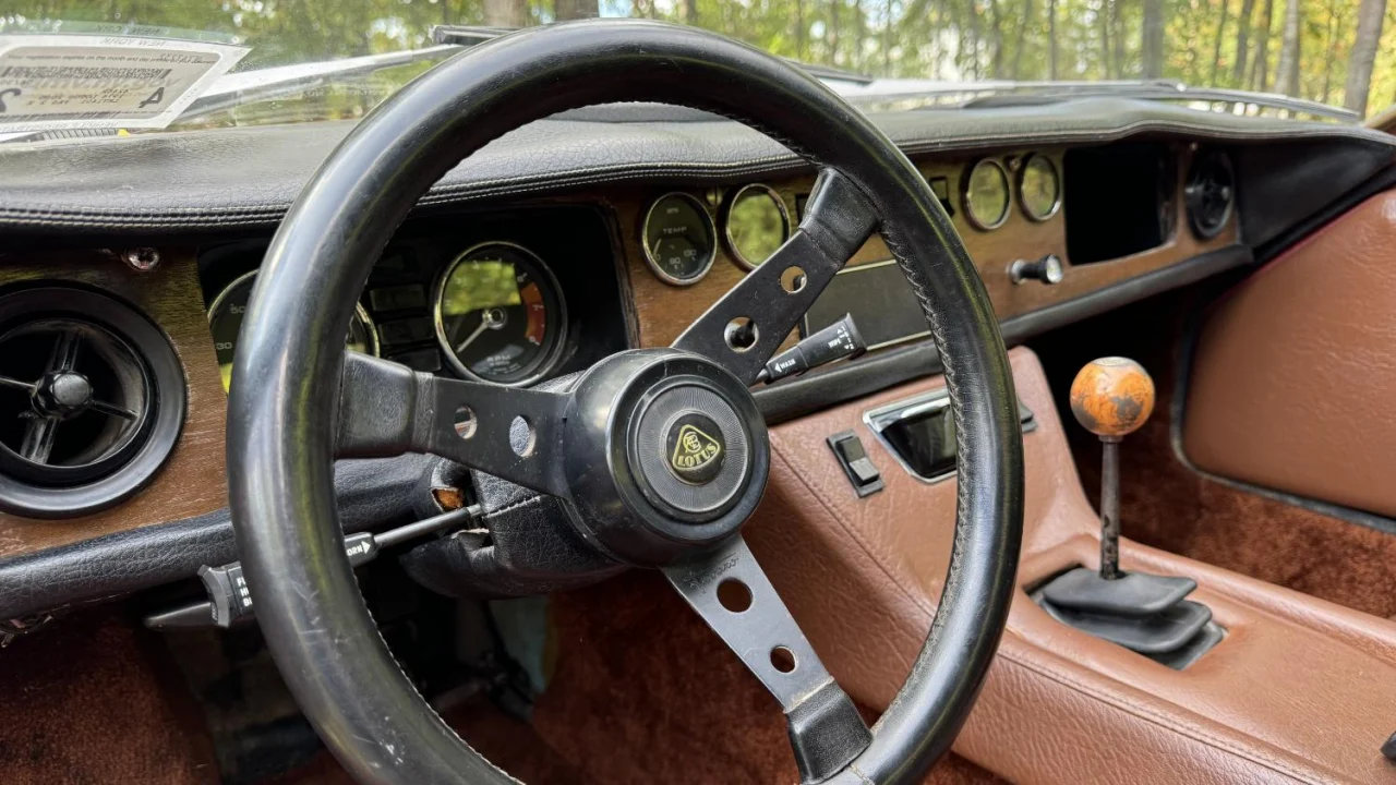 The Lotus-engineered Ford 1.6-liter I4 features DOHC with dual carburetors to make 113 horsepower, though the addition of headers help it make more. It is paired with a five-speed transaxle. There’s been several recent servicing including new clutch and flywheel, repaired carbs, and new electric pump.