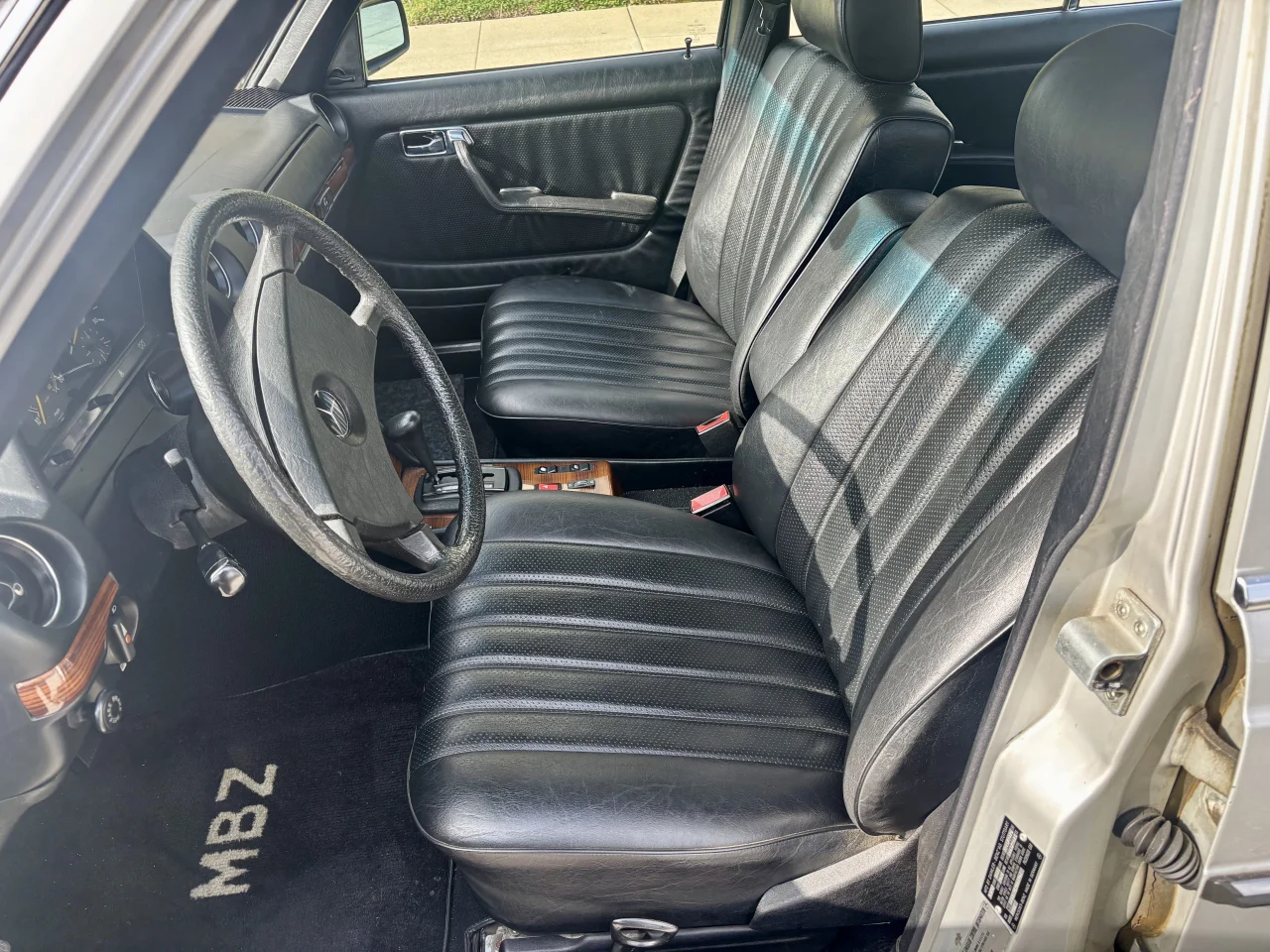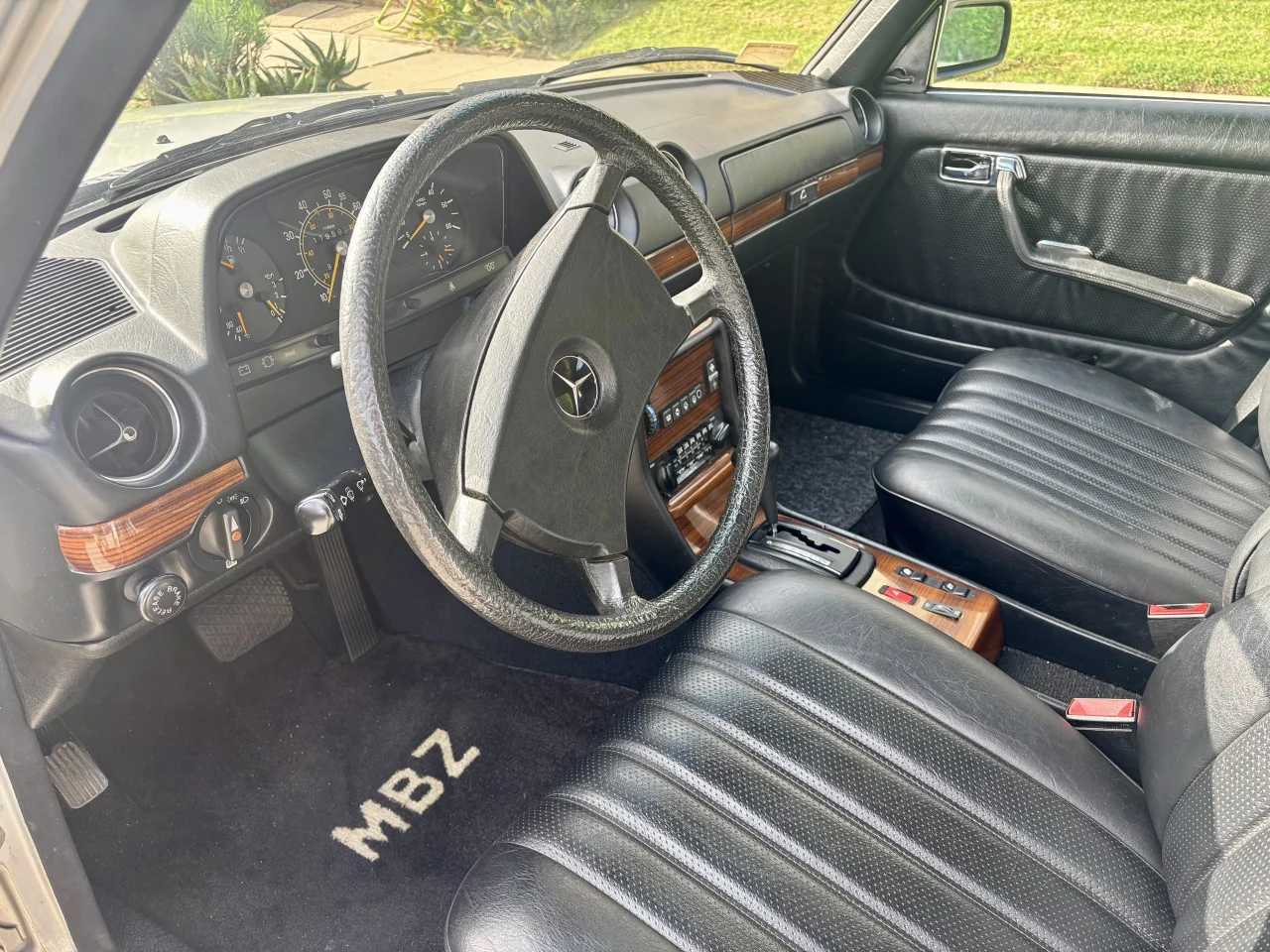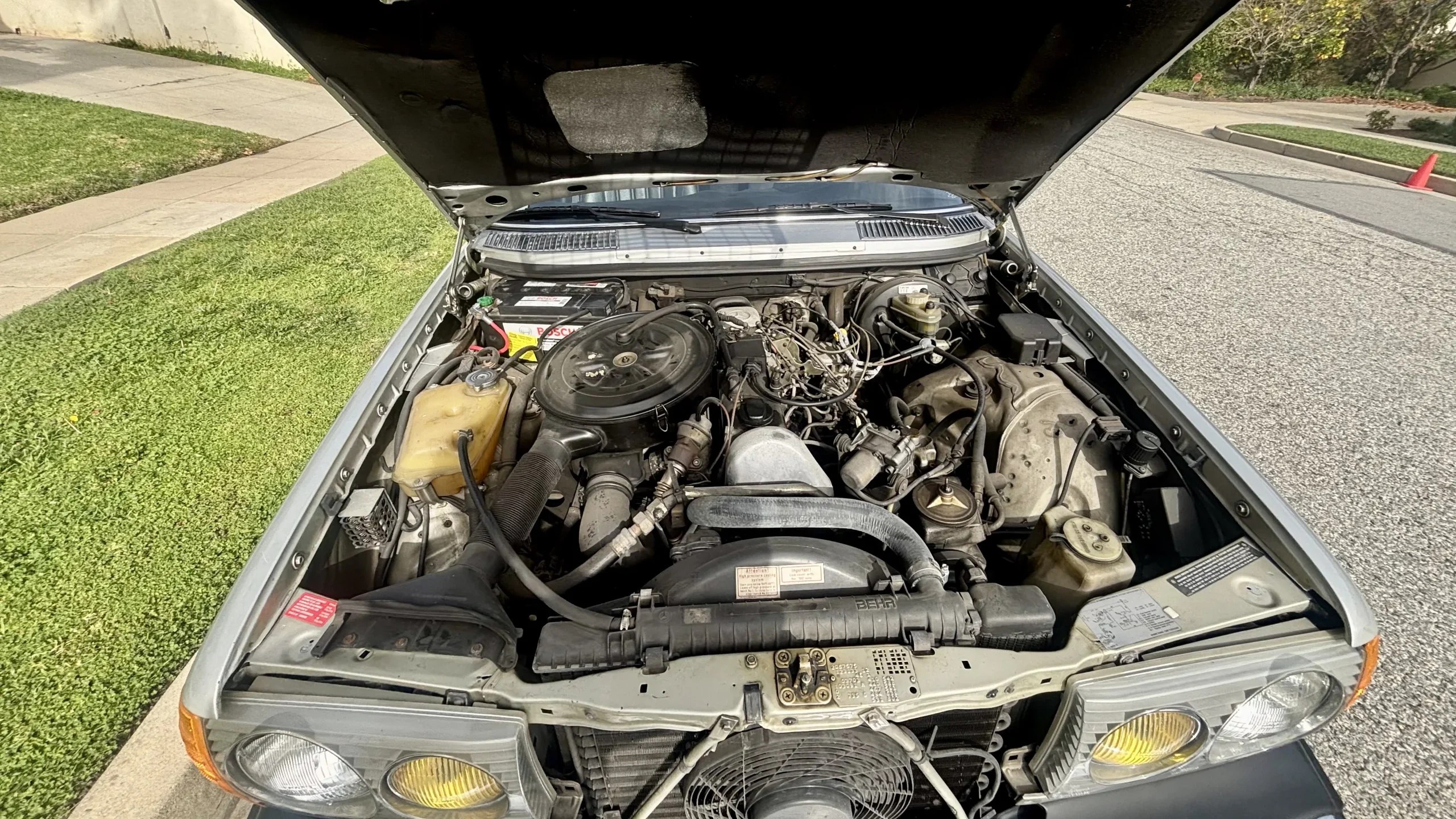 Under the hood, the OM617 3.0-liter inline five-cylinder turbo-diesel engine looks to be in good shape and correct, albeit a little dirty. This engine compartment would look amazing after a detail. These inline five-cylinder diesel engines last literally forever, so the 119,954 miles clocked on this car means it has decades left in its lifespan. Service history includes a coolant flush, new thermostat, new upper and lower radiator hoses, power steering fluid flush, new power steering filter, new check valves, and a new air filter.