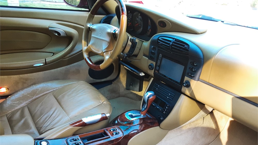 Prince’s famous “1999” song came out in 1982. That would be like someone in 2025 singing about “partying like it’s 2042.” Wild how time flies. Either way, can you believe the “996” version of the Porsche iconic 911 came out 26 years ago? The eye-catching Arena Red body of this cabriolet is color-matched to a removable hardtop. Exterior features include a rear spoiler, dual exhaust outlets, and 17-inch wheels wrapped in Michelin tires.