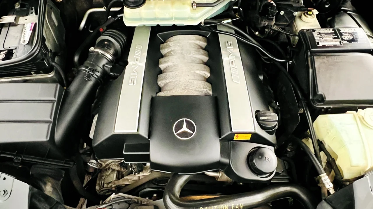 Under the hood, the M113 V8 looks great. The engine compartment is clean and everything appears as if it was cared for and maintained. Recent service includes the replacement of the crank position sensor, A/C drier, A/C expansion valve, fuel pump, fuel pressure regulator, thermostat, water pump, valve cover seals, coolant reservoir, power steering pump, and power steering reservoir. In addition, this ML55 received a recent transfer case rebuild, a new transmission pan seal, and fresh brake pads and rotors.