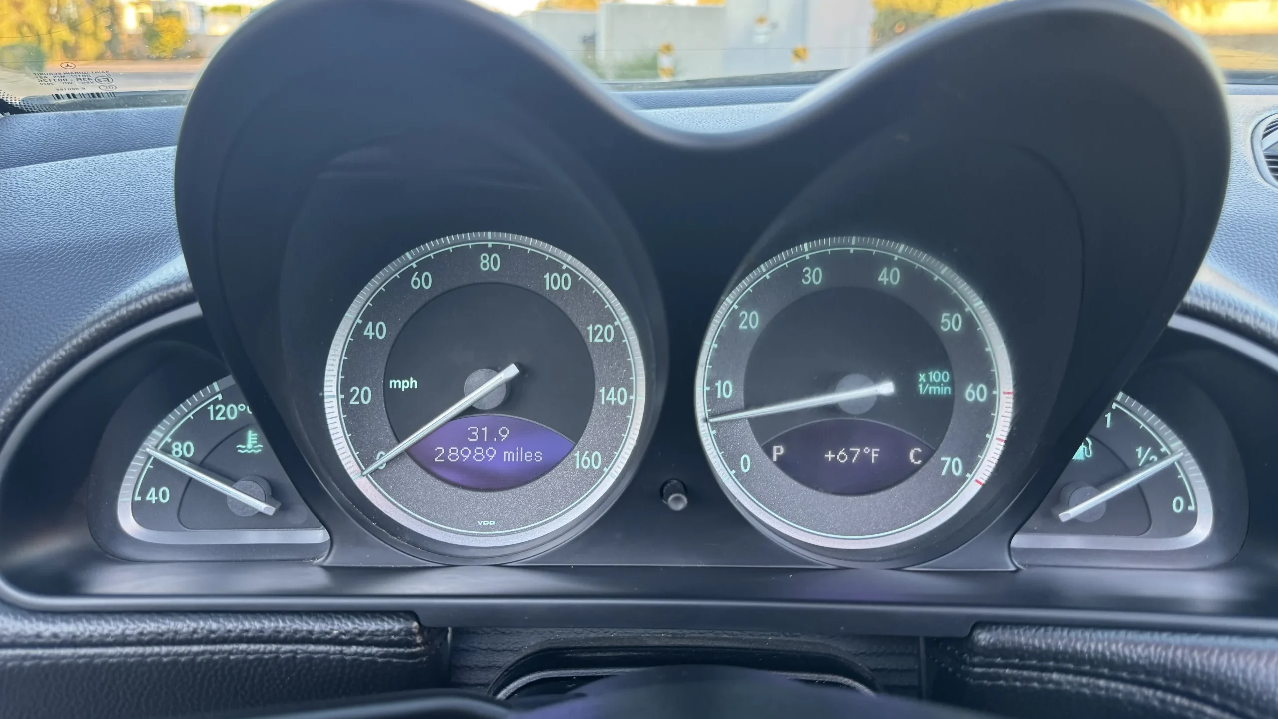 The interior is just as nice, with the black leather seats showing no wear, not even on the seat side bolsters. It is also nicely optioned with wood trim, power everything and a factory infotainment system that includes Bluetooth connectivity. Having owned the AMG version of this car myself, I can say the seats are incredibly comfortable. The instrument cluster looks amazing, and the performance of even the standard SL500 model is more than adequate. People seem to forget it was the SL500 that really brought high performance back to the SL Series cars. In period tests, it was capable of a 5.8 second 0-60 time, a quarter-mile time of 14.3 seconds, and a top speed of a true 155 mph. Not only is this model comfortable, but it can also progress quite rapidly when asked—just the thing for a cross-country trip.