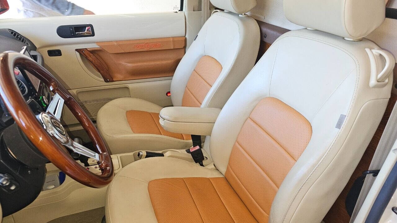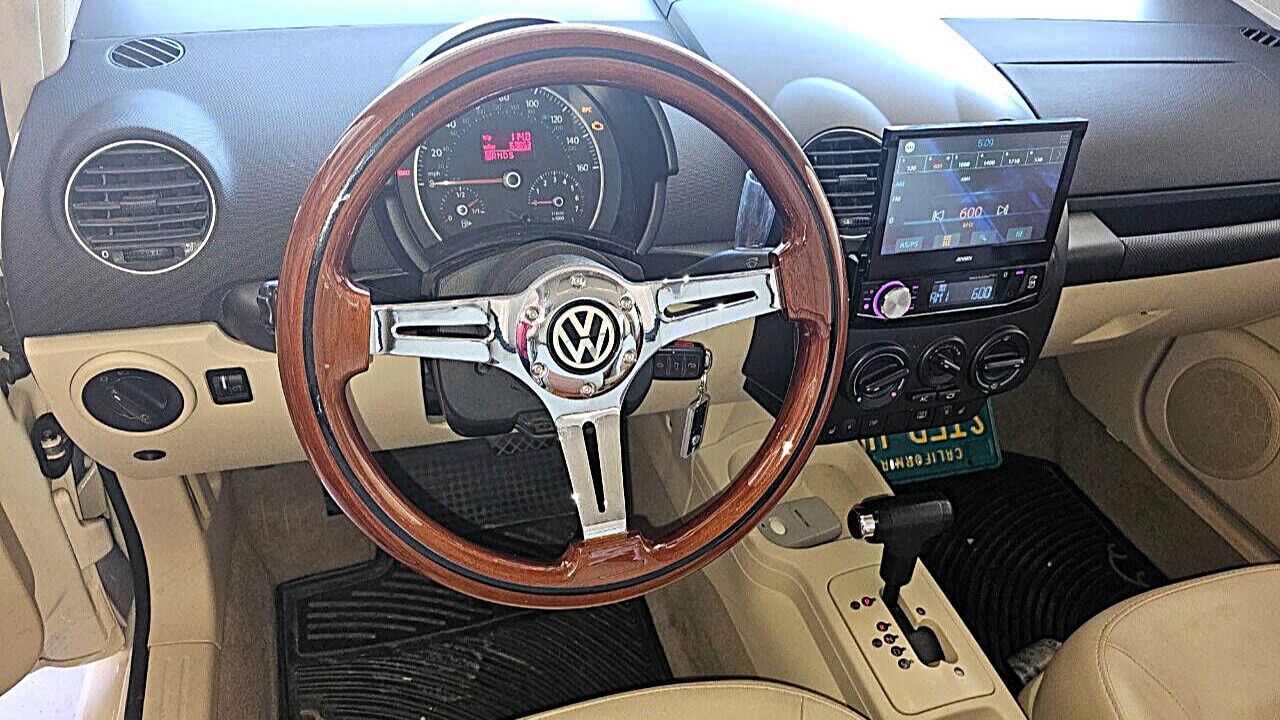 The exterior is painted in a two-tone combination of cream and orange metallic. Unique, aftermarket taillights have replaced the original New Beetle taillights and, boy, do they look good on this vehicle. Other exterior features include color-matched adjustable side mirrors, power sunroof, and custom metal bed. A set of 16-inch alloy wheels (with anti-theft wheel locks) is wrapped in 205/55 Kelly Edge A/S radials.
