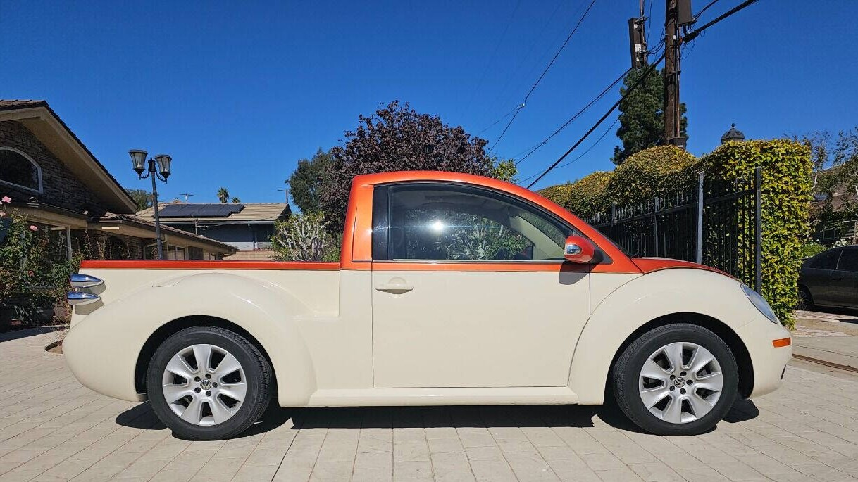 Currently listed on AutoHunter is this 2009 Volkswagen New Beetle Custom Pickup. If you remember the Volkswagen Rabbit pickup from 1979-82, then allow us to introduce its heir apparent! This New Beetle was converted with a kit from Smyth Performance, Inc. which was founded by the same guy who started Factory Five Racing. Quite a handsome ute, innit? This VW is powered by a 2.5-liter inline-five paired with a six-speed automatic. Other features include metal bed, power sunroof, air conditioning, power windows and locks, and more. Finished in cream and orange metallic over a custom cream-and-tan leather interior, this professional pickup conversion is offered from the selling dealer with a clear title.