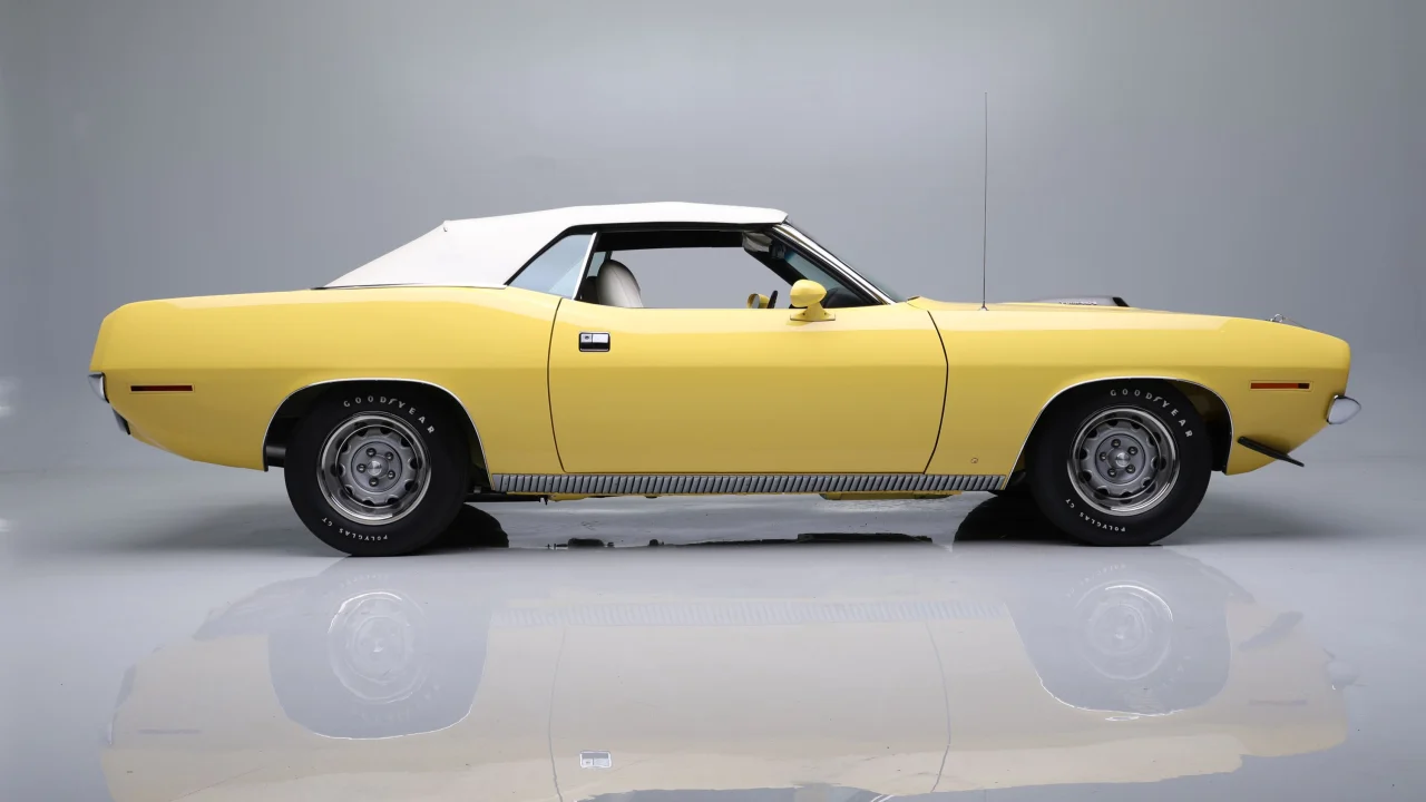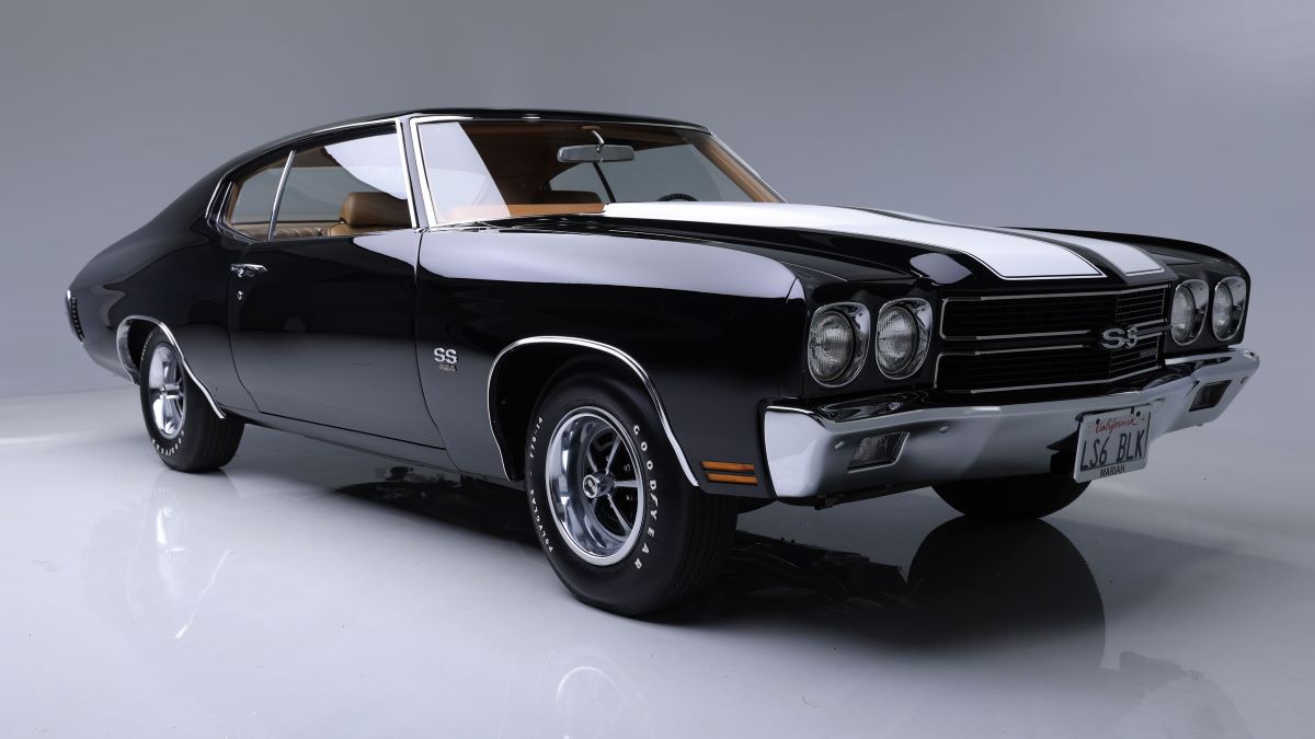 Finished in Hi-Impact Lemon Twist Yellow, the restored 1970 Plymouth ‘Cuda convertible (preview) is one of 29 Six-Barrel ‘Cuda convertibles produced in 1970 and one of 17 equipped with a 4-speed manual transmission. The interior features a wood-grain console, tachometer and an AM radio with an 8-track player. A 1970 Chevrolet Chevelle SS LS6 (preview) was restored to factory specifications during a professional three-year, fully documented restoration. It is finished in its factory-correct Tuxedo Black exterior over a Saddle interior and retains its original matching-numbers V8 engine with Chevrolet dealer-installed 4-speed manual transmission.