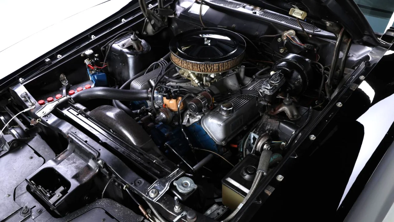 Take a peek inside and you’ll note this Spoiler has a four-speed manual with console. Glance at the odometer and your eyes will open wide at the 4,459 actual miles. It’s like this car can’t get better than it already is, yet it does—check out the “Day 2” equipment that’s been on this vehicle for decades, such as the American Racing 200S wheels mounted on Goodyear Arriva tires, the huge Holley R-4575-AAA 1150-cfm carburetor on a Shelby aluminum intake manifold, the set of eight Sun gauges mounted on the dashboard, and the Craig Powerplay 50-watt stereo amp with 8-track.