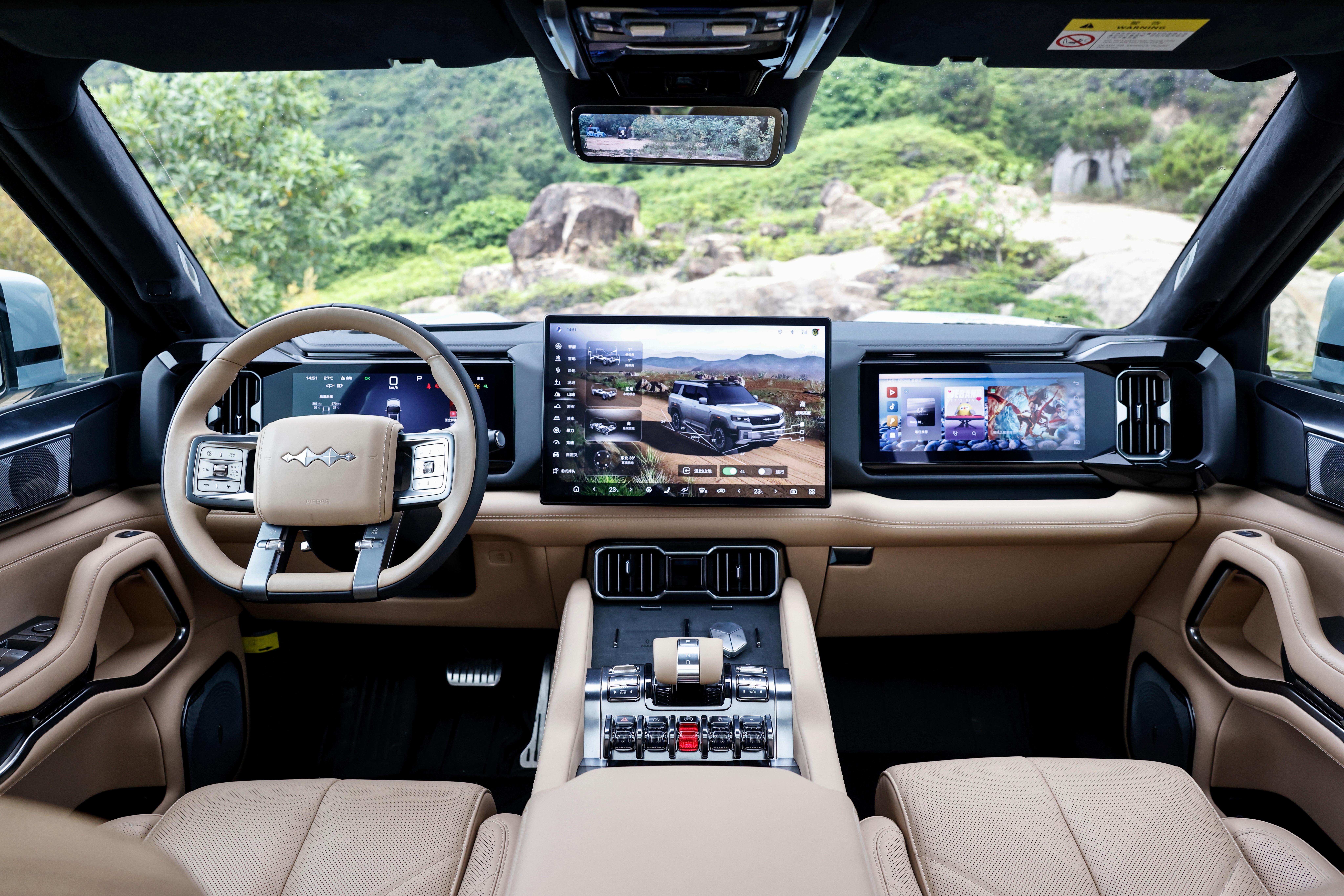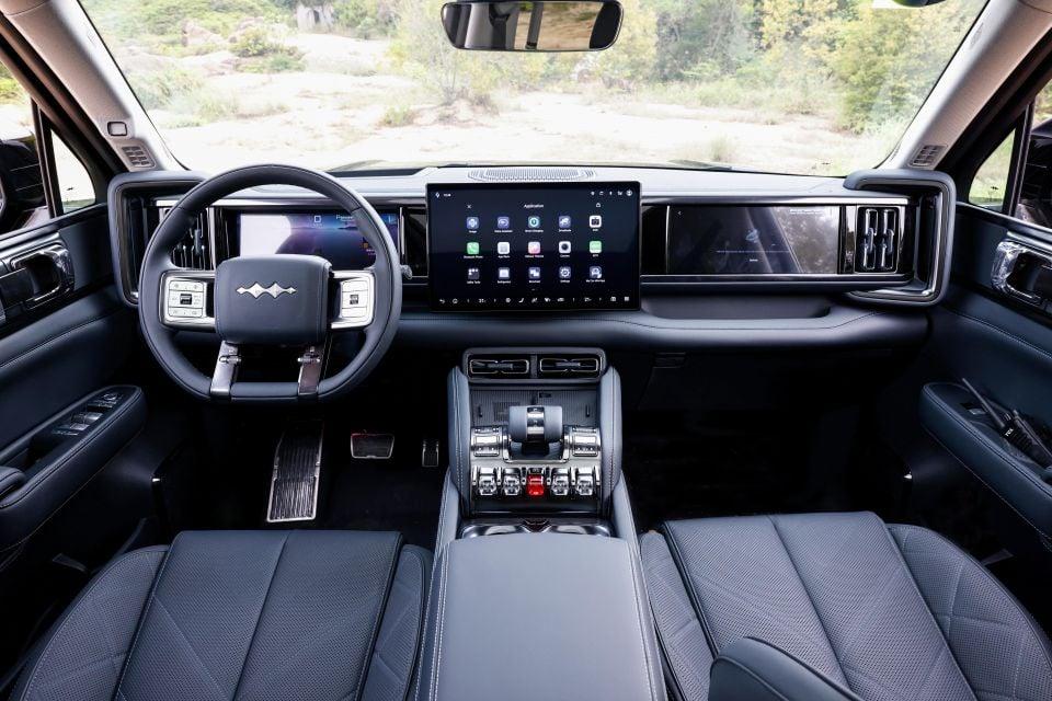 Driving modes include Snow, Mud, Sand, Wading, Mountain, Burst and Sport+, while the interior of the B8 we tested in China had swathes of leather on the doors, dash, seats and steering wheel, plus a massive 17.3-inch central touchscreen.