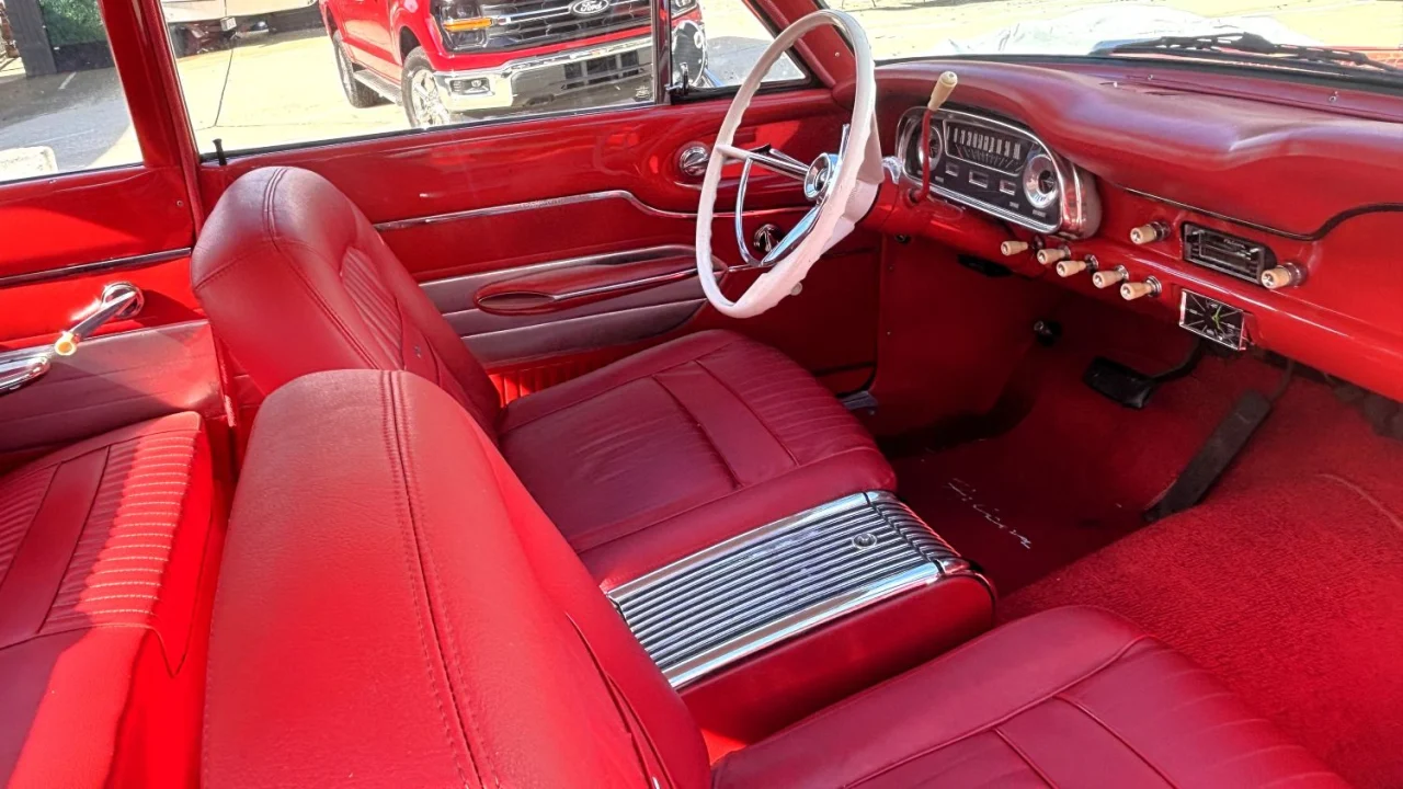 Though debuting in 1961, the Falcon Futura felt more fully realized for 1962, and this Rangoon Red example shows us how smart interior styling can make penny pinching attractive. Power comes from a 170ci inline-six paired with a three-speed automatic.