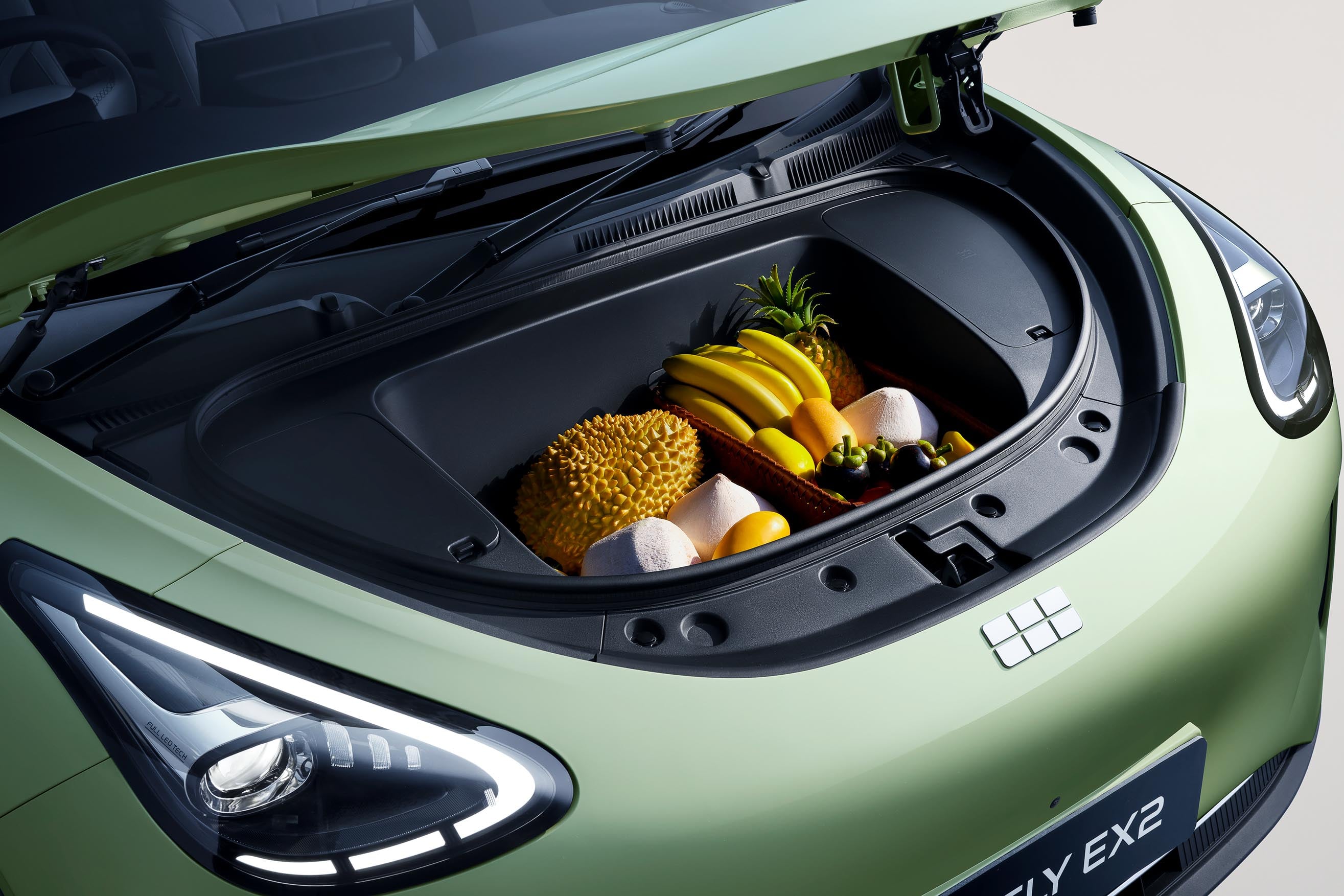 The Chinese brand says the EX2 “demonstrates exceptional use of interior space” with more than 30 “thoughtfully placed” storage compartments dotted throughout the vehicle, including a ‘frunk’ under the bonnet.