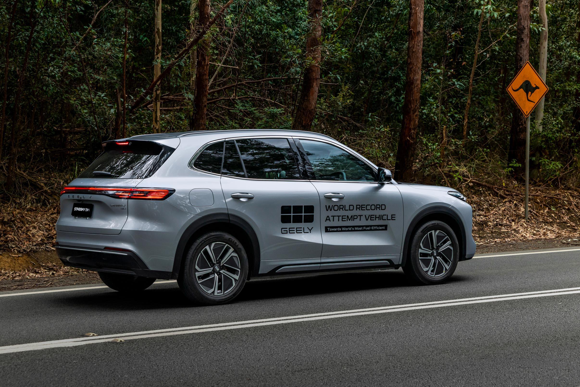 With a verified fuel consumption figure of 3.83L/100km – measured after completely refilling the Starray EM-i’s tank in Frankston (40.38L) – the Chinese SUV not only managed to set a new world record, but also bettered Geely’s own official NEDC fuel consumption figure of 4.4L/100km.