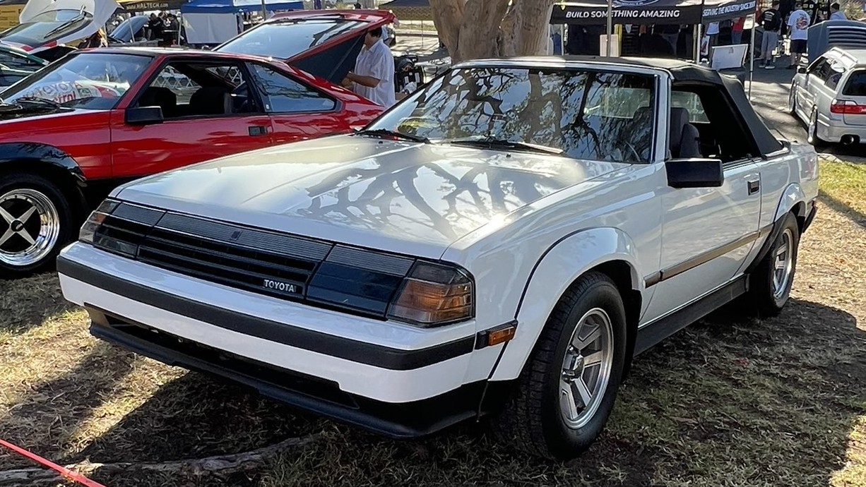 The forerunner to later Supra models, this wedge-shaped “A70” generation Toyota has been a popular vehicle in the collector marketplace. It was powered by the legendary 2.4-liter “22R-E” engine. This white example at JCCS was among a limited production group of rare convertibles. American Sunroof Company (ASC) performed the conversions.