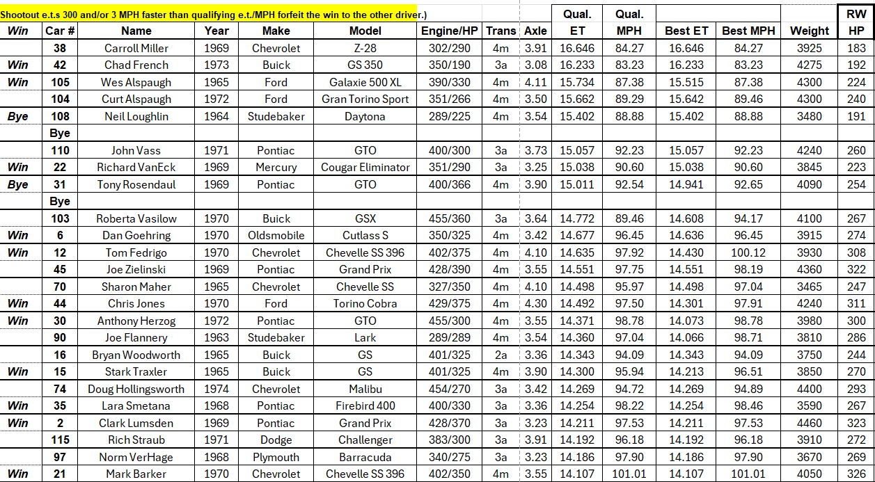 Now, you can view all the cars – which ones were winners, their qualifying runs, their fastest ETs, and more. We trust you will find this information valuable in your bench-racing discussions.